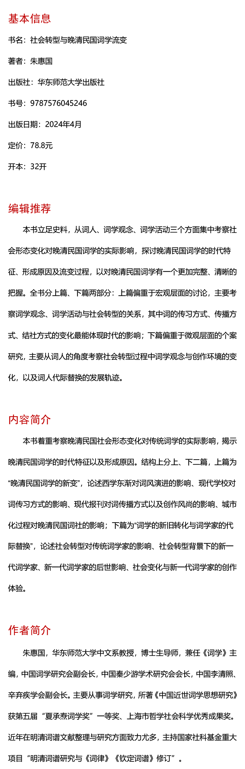 社会转型与晚清民国词学流变 学术文库 朱惠国著