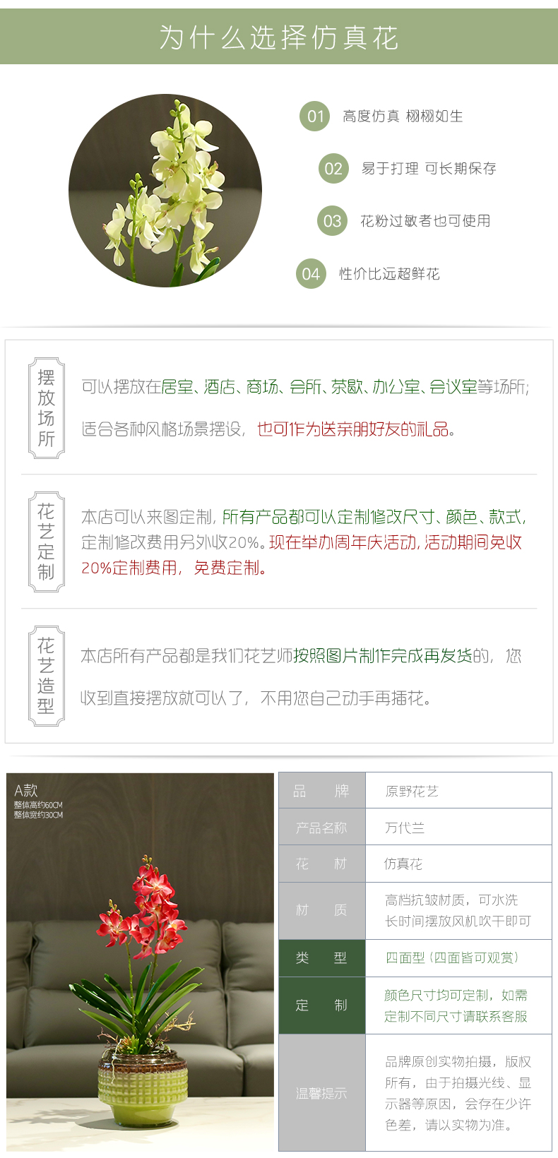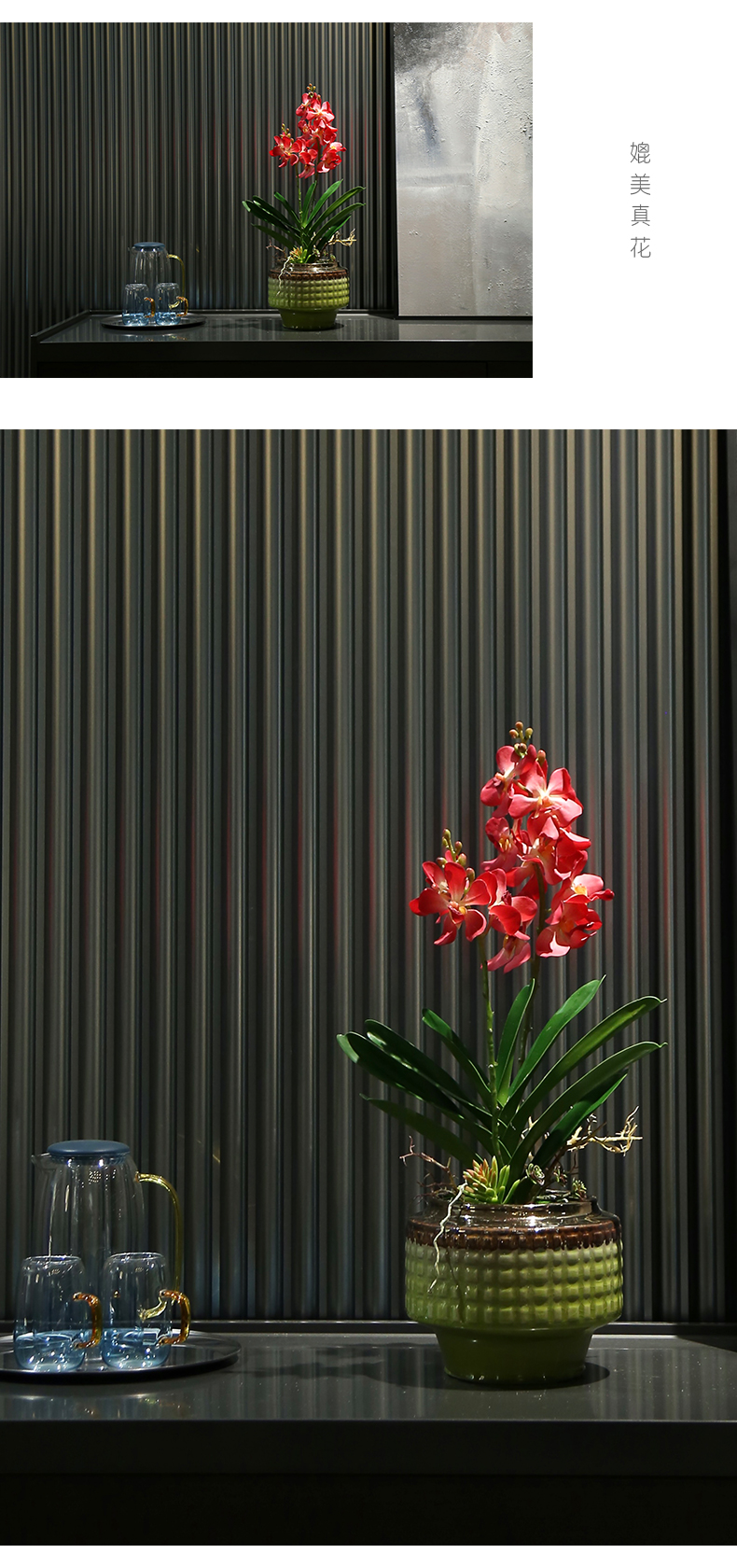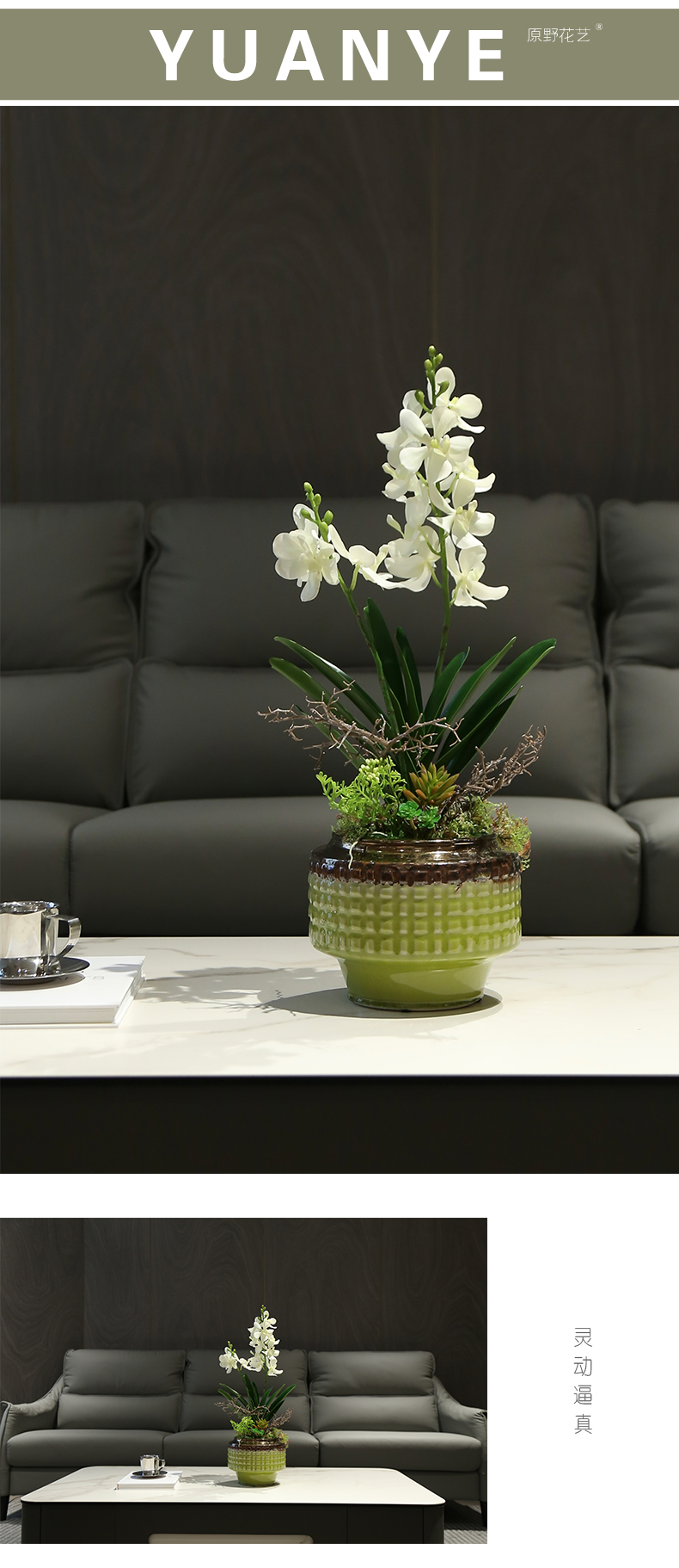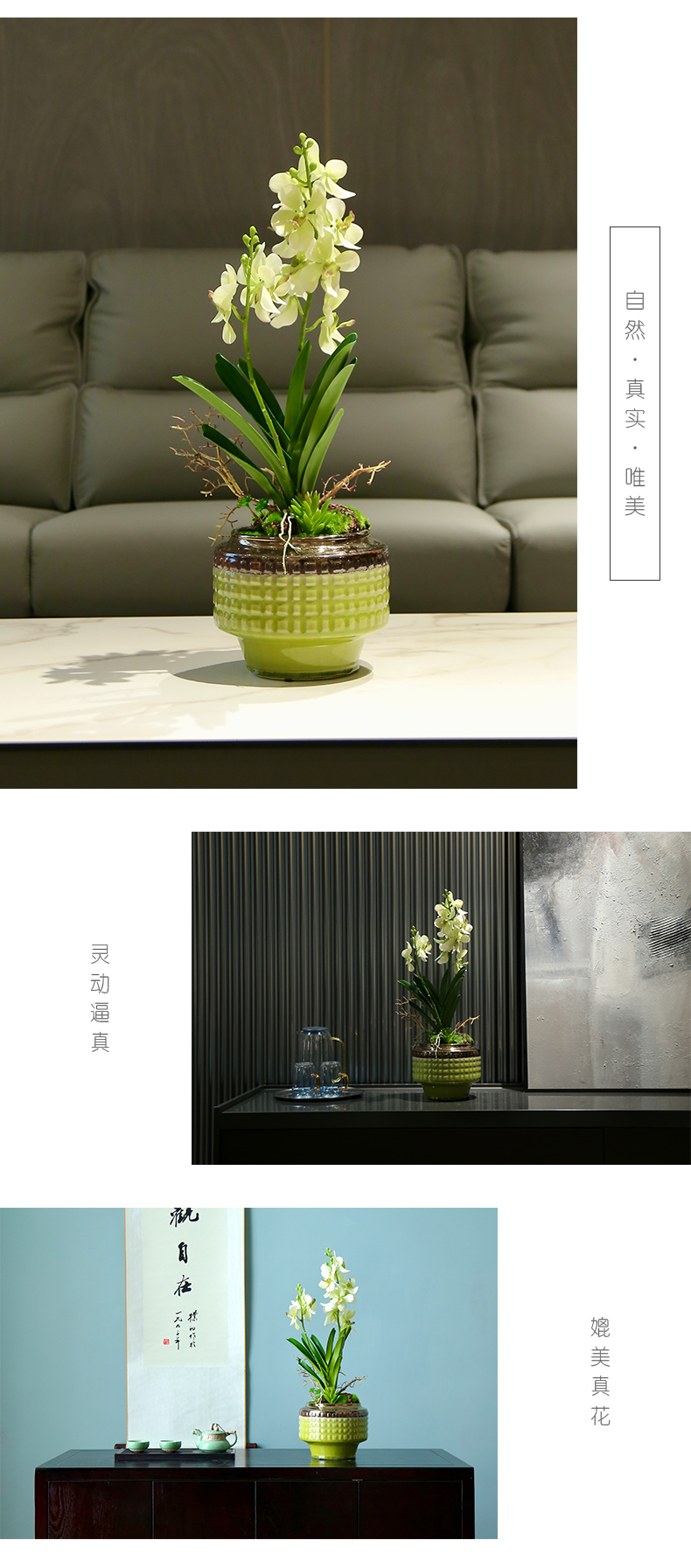 新中式高端仿真花餐桌花摆花茶室客厅玄关前台摆设茶几兰花装饰花