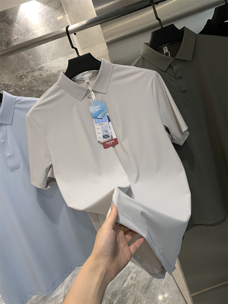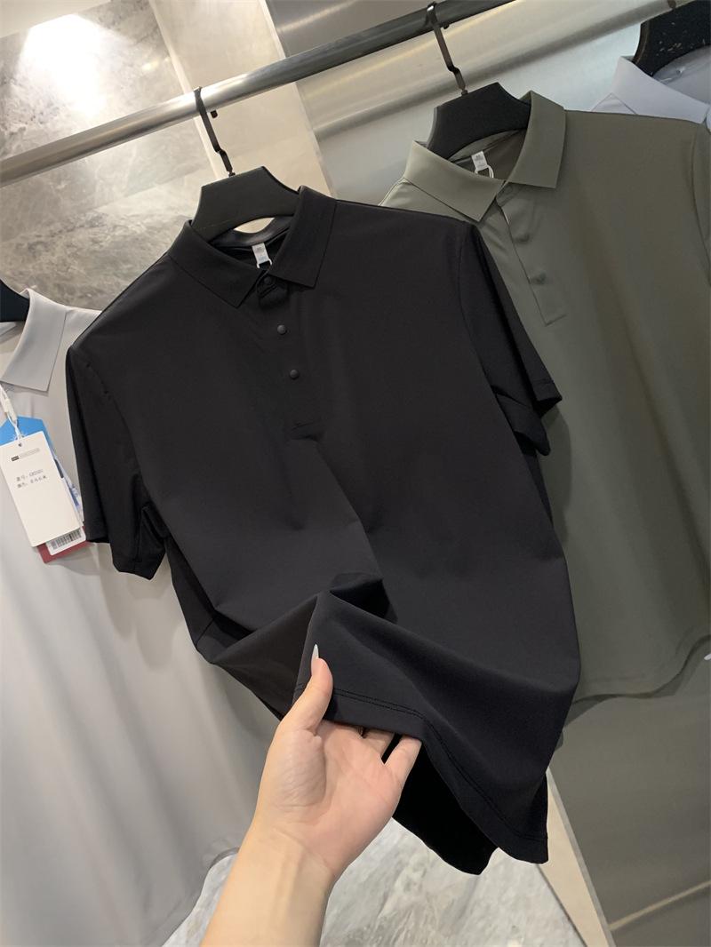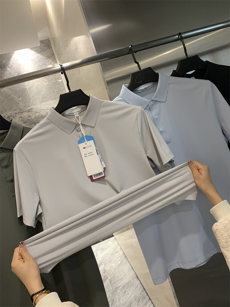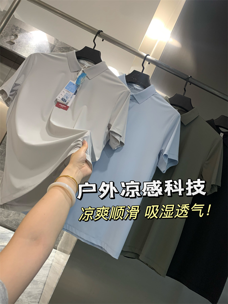 凉感降温冰丝速干!2025无痕压胶工艺!高支翻领短袖商务T恤polo衫男!