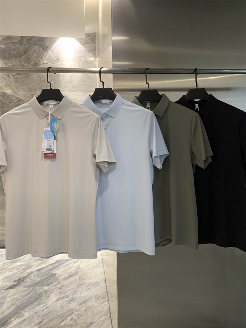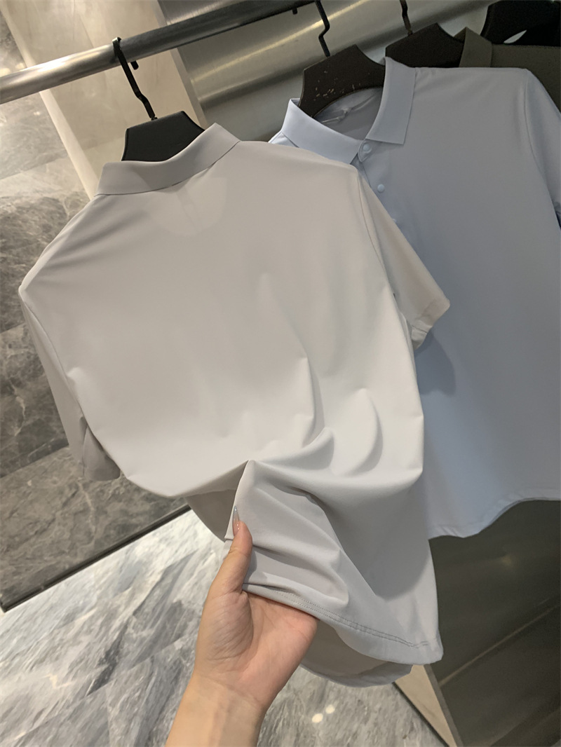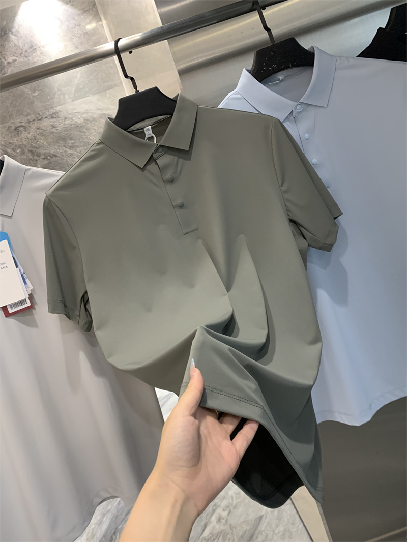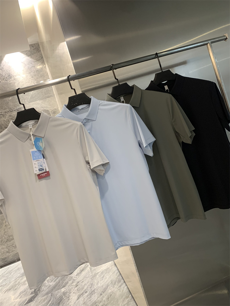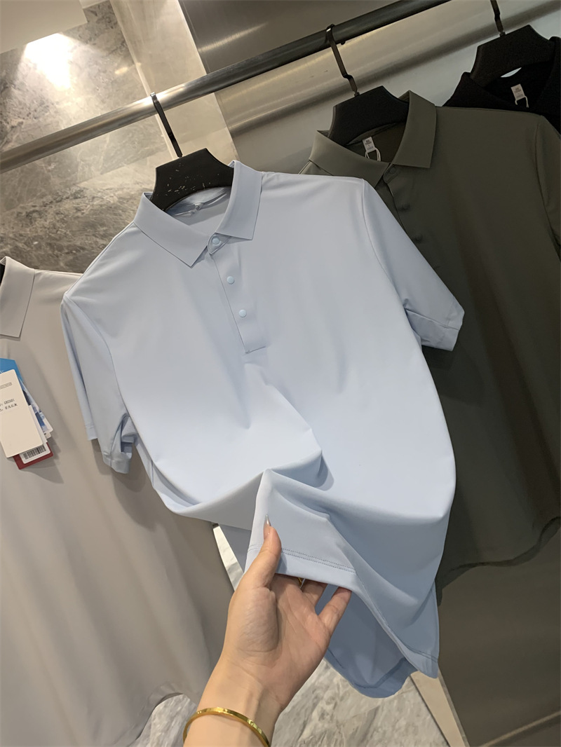 凉感降温冰丝速干!2025无痕压胶工艺!高支翻领短袖商务T恤polo衫男!