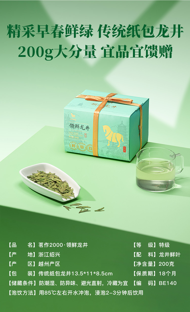 【2026年春茶】八马茶业丨茗作2000·领鲜龙井绿茶茶叶200g