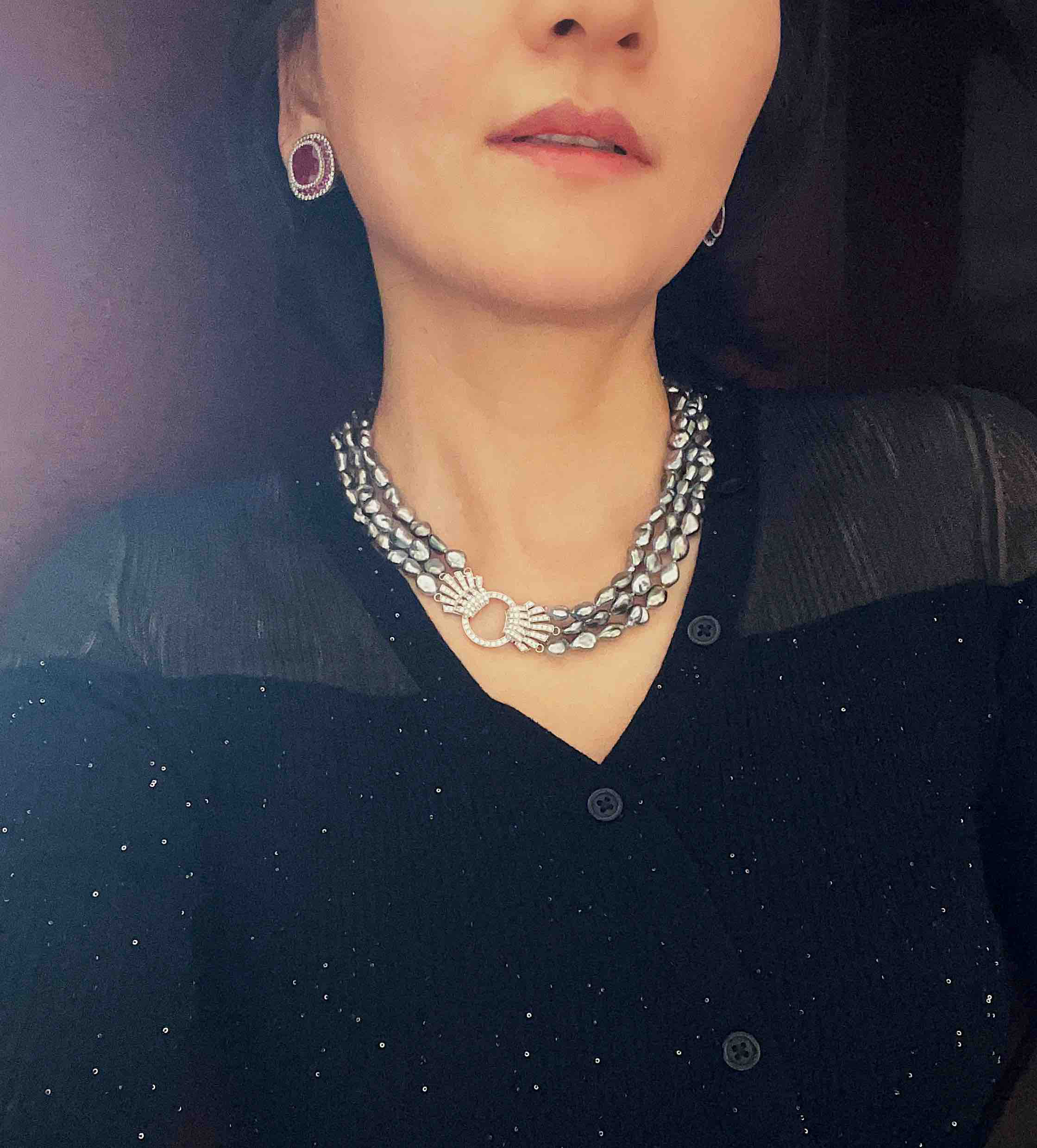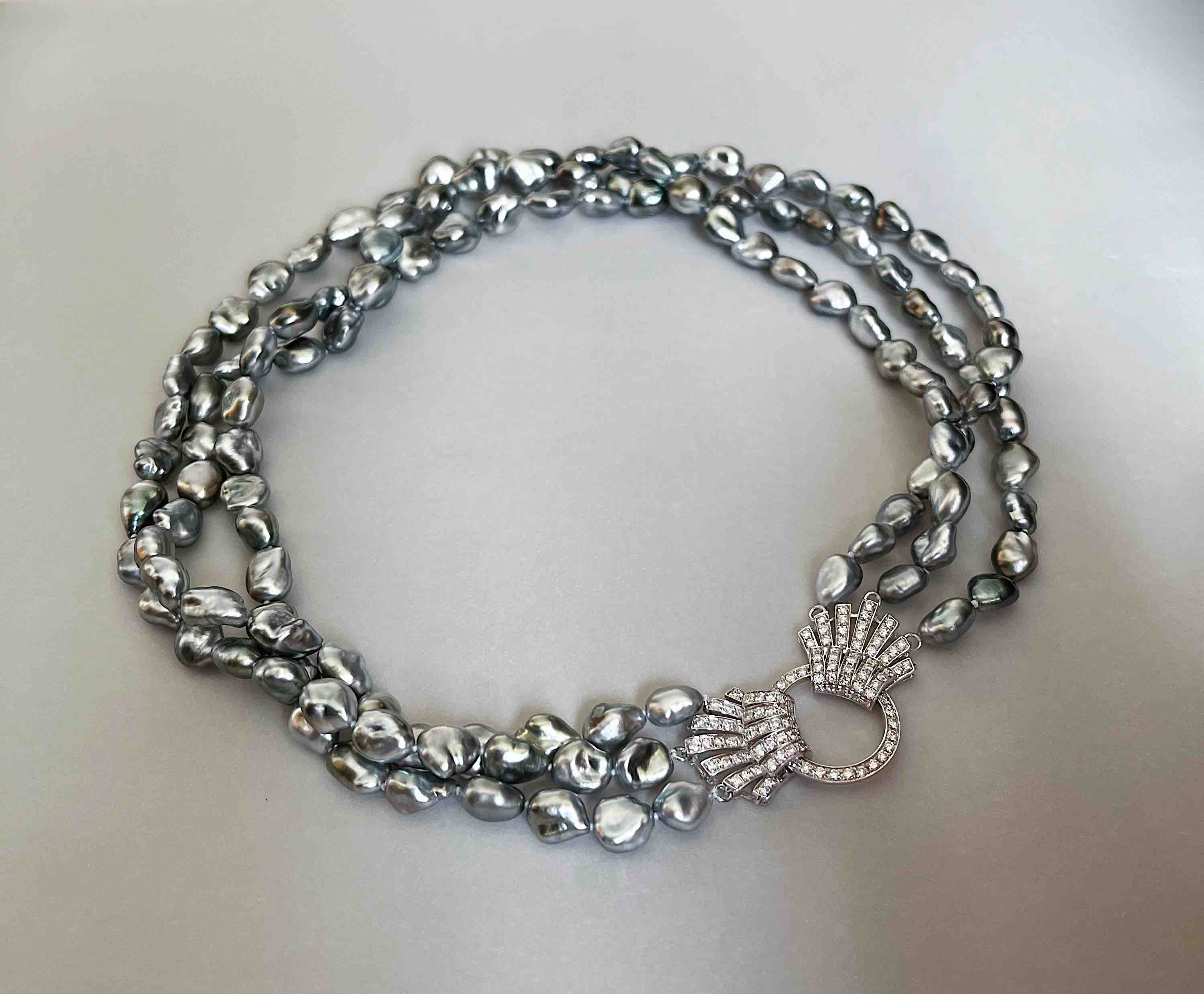 作品名称:18K镶钻石和大溪地KESHI珍珠项链