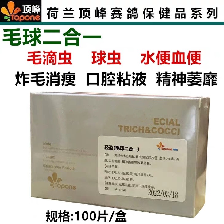 【轻盈毛球二合一】片剂100粒/毛滴虫球虫2合1赛鸽用(荷兰顶峰)