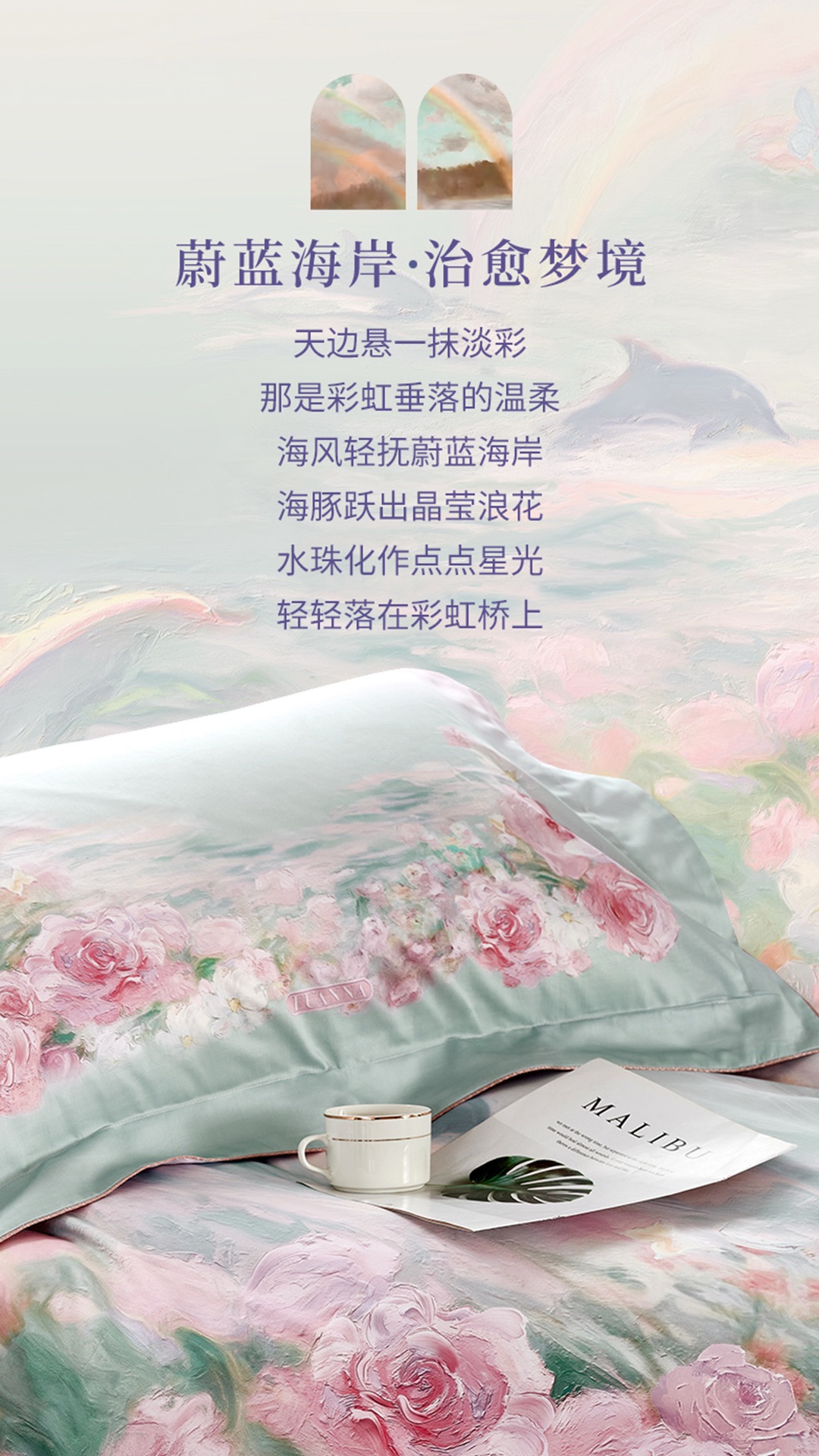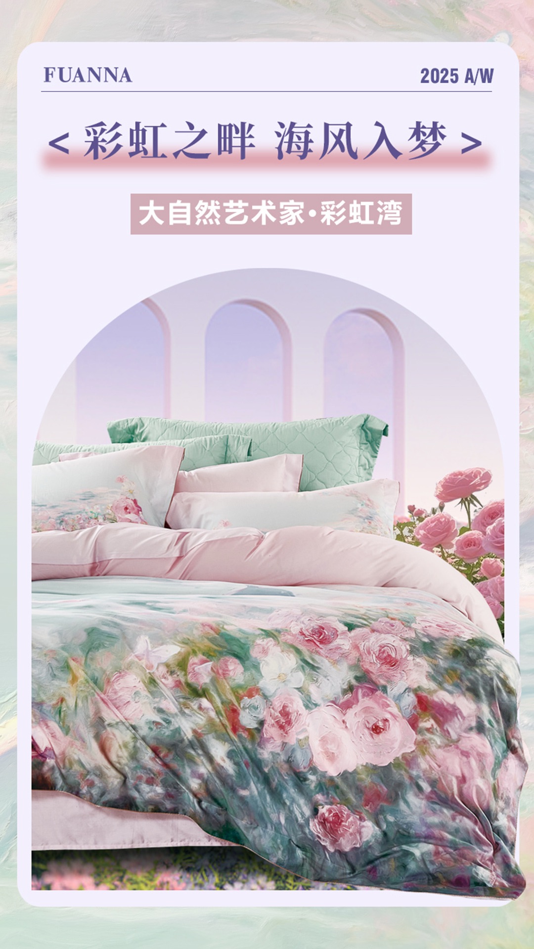 10楼 富安娜 独幅床单四件 大自然艺术家 彩虹湾 (粉色) 吊牌价3980~4380元 活动价1999元