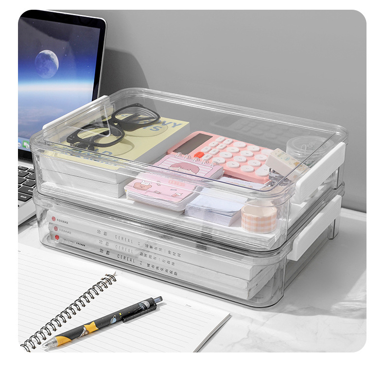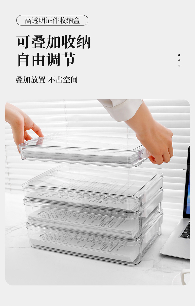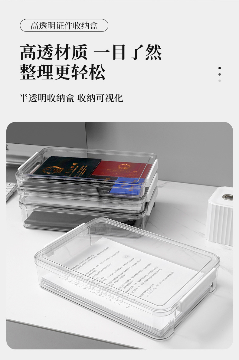 加厚透明桌面收纳盒套装 文件证件收纳盒