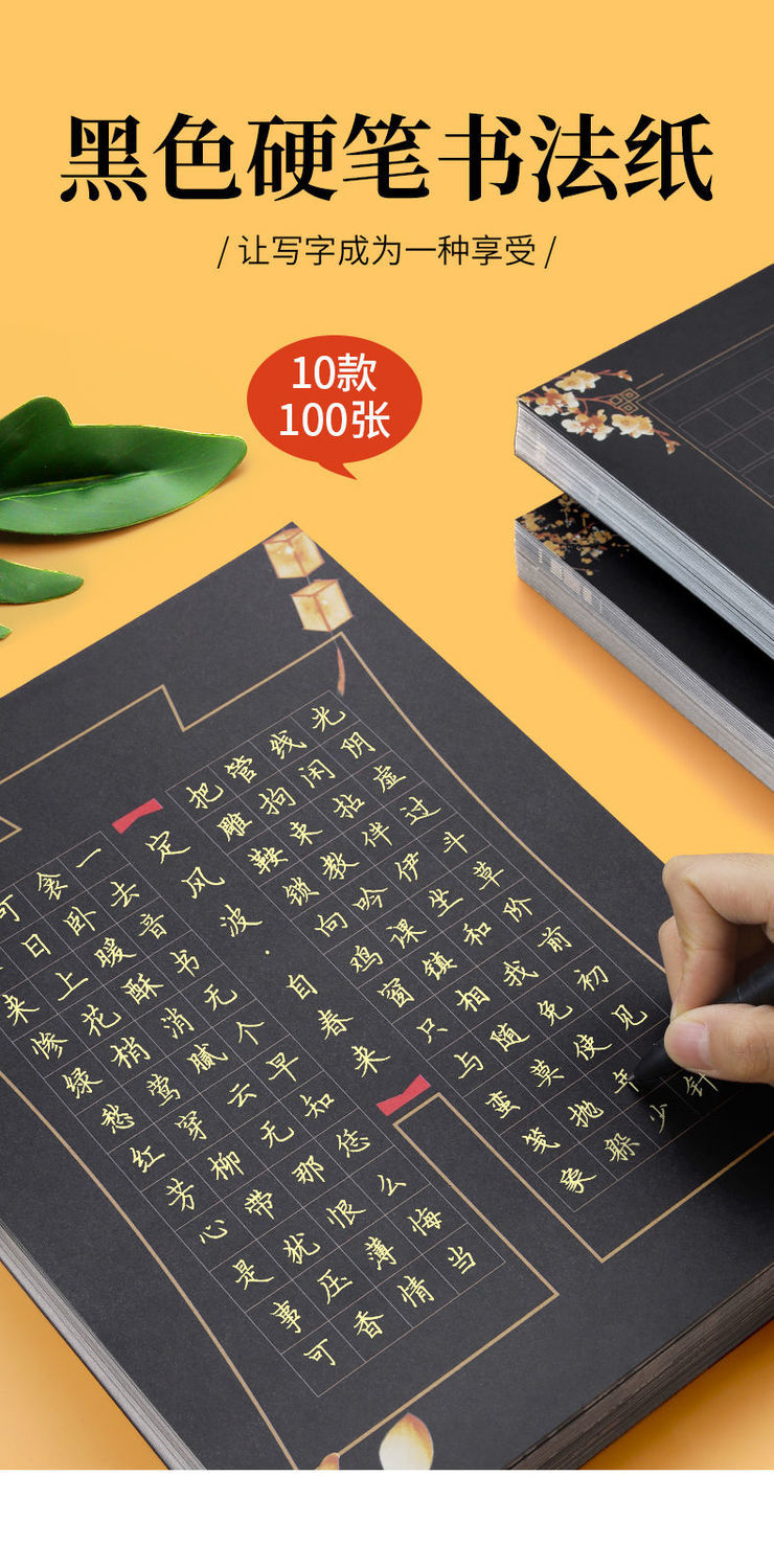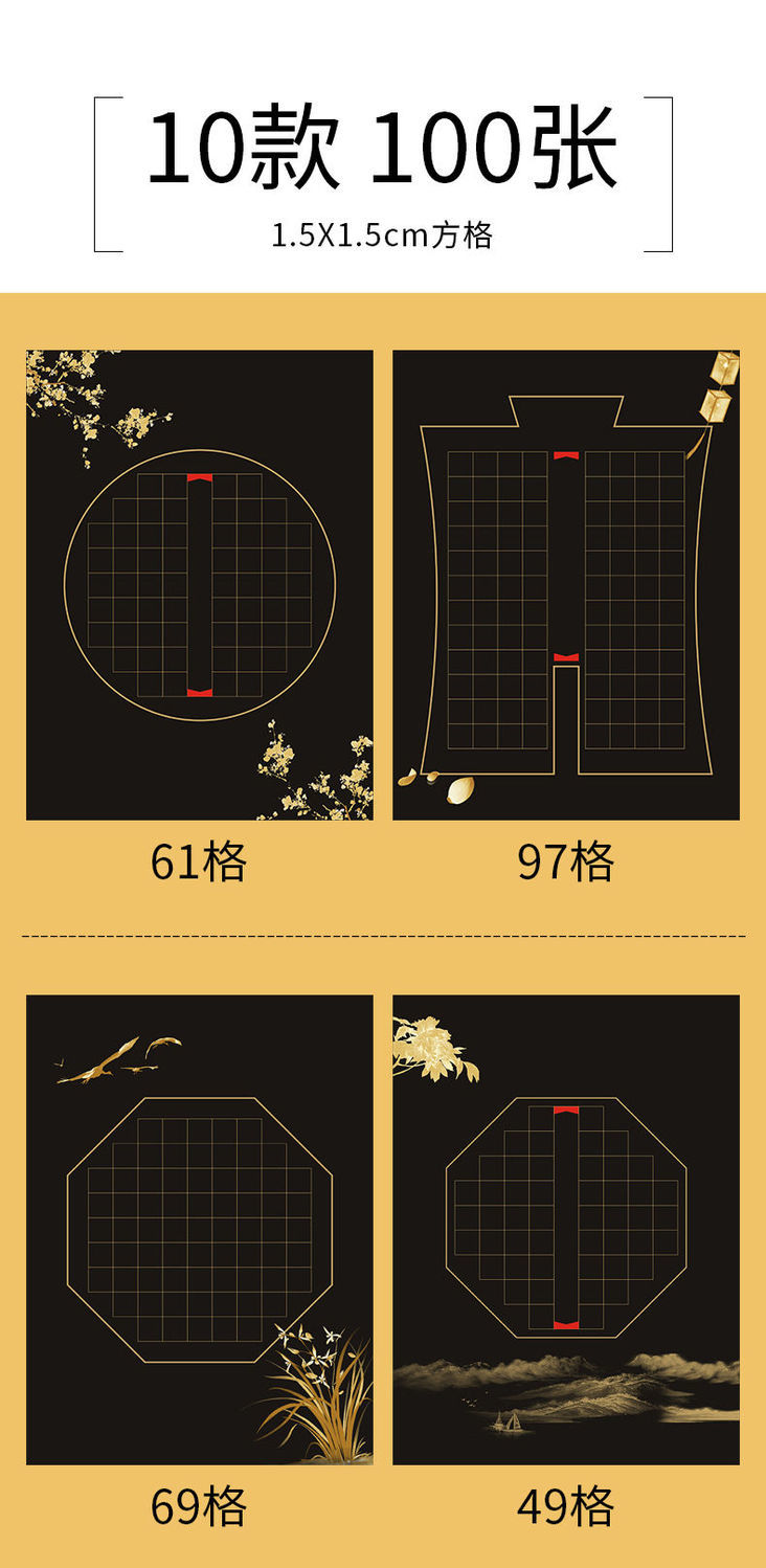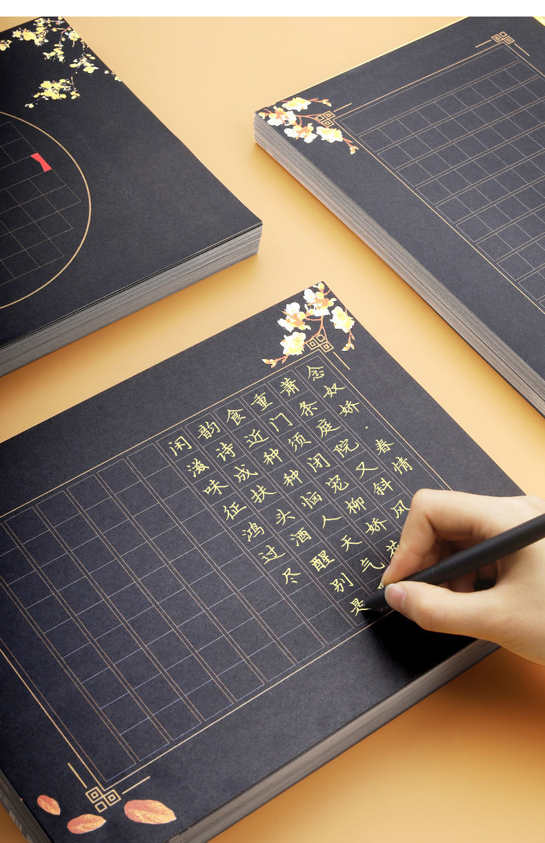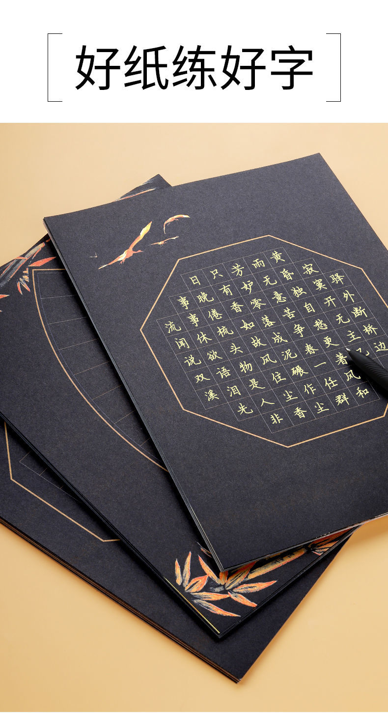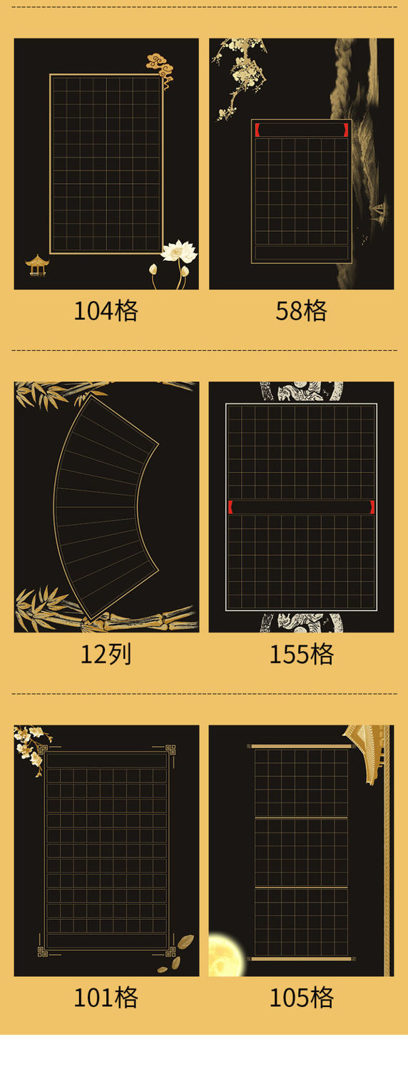 a4硬笔书法作品纸黑色方格 中国风黑底白字练字比赛纸
