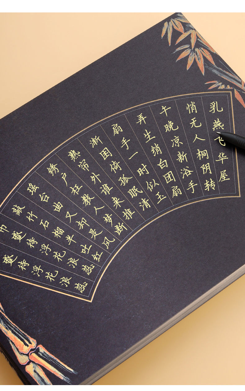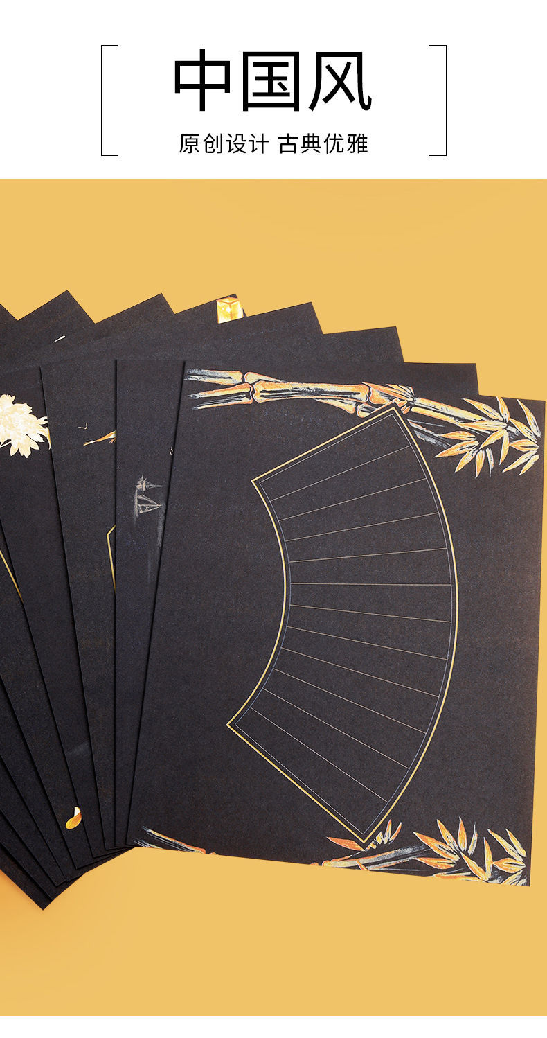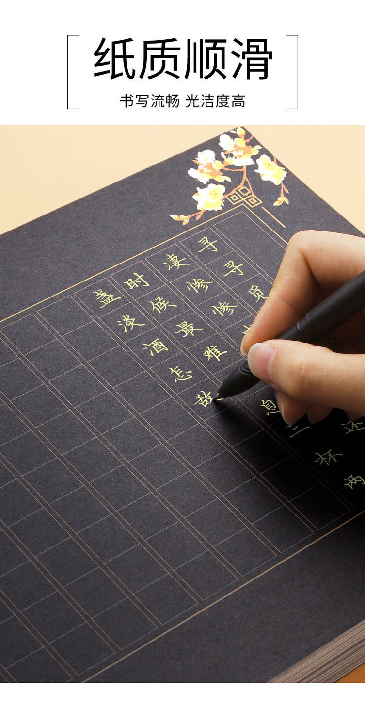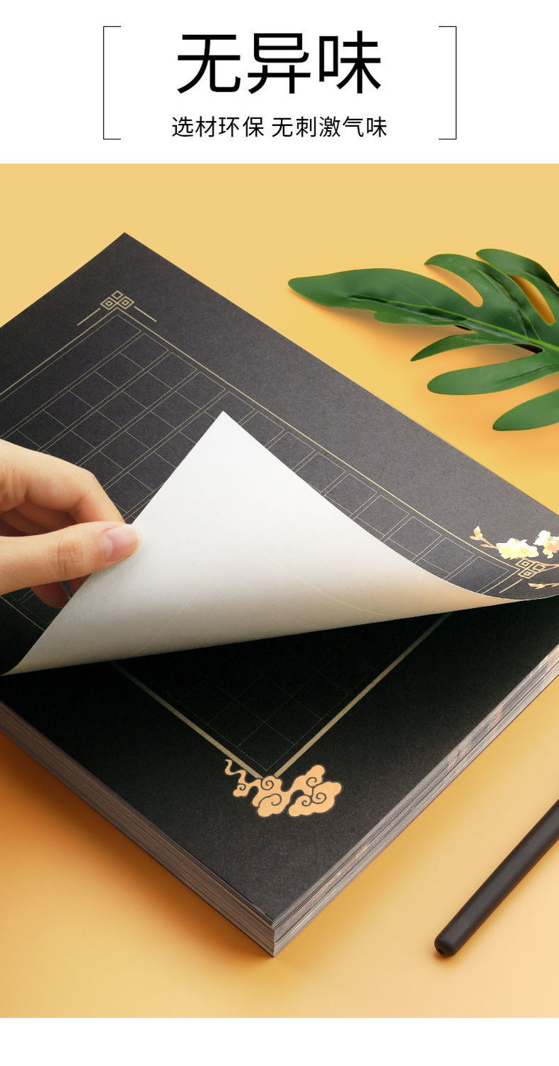 a4硬笔书法作品纸黑色方格 中国风黑底白字练字比赛纸