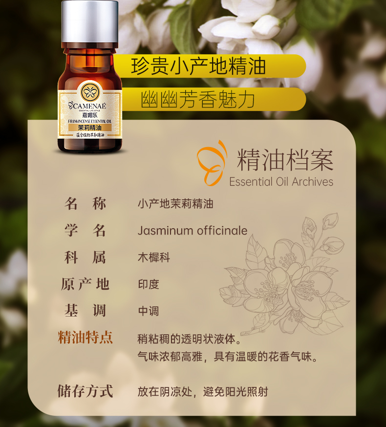 【双12大促】嘉媚乐小产地茉莉精油 补水润肤 滋润弹嫩 单方精油