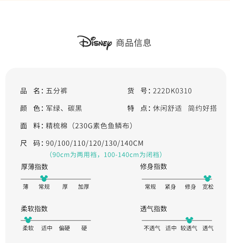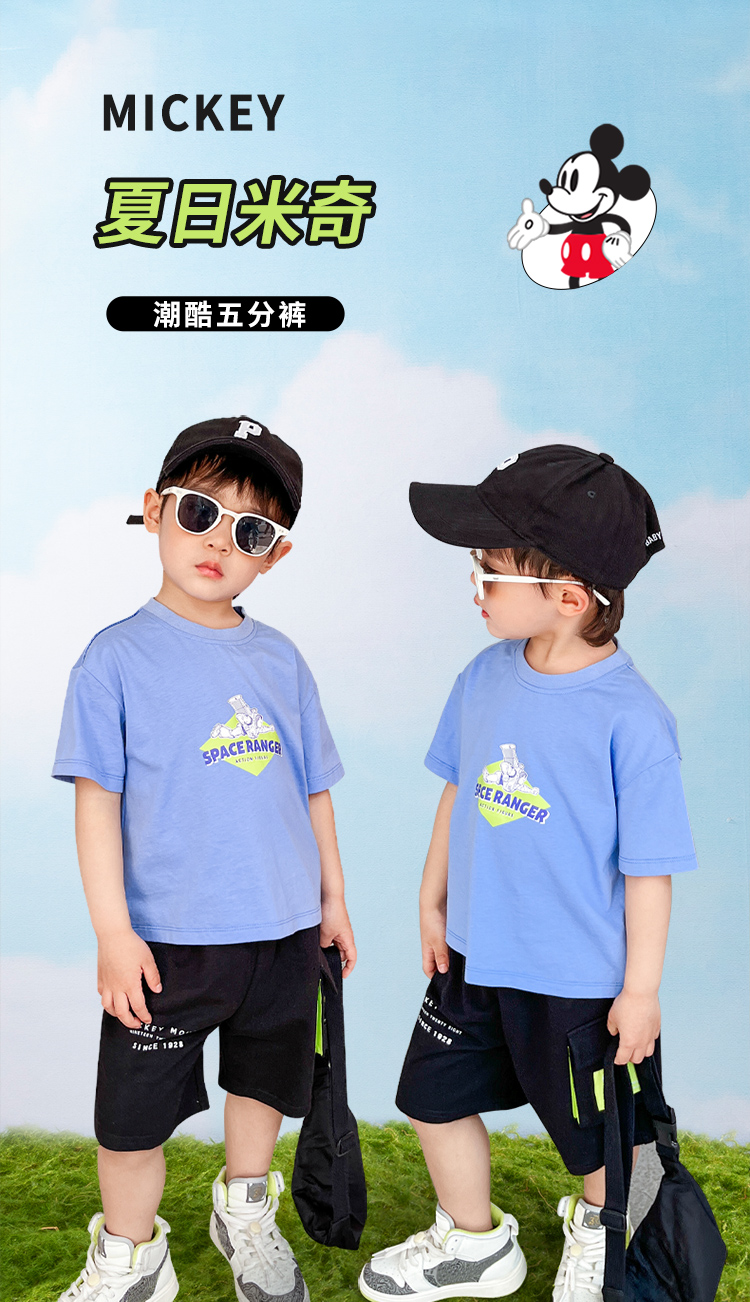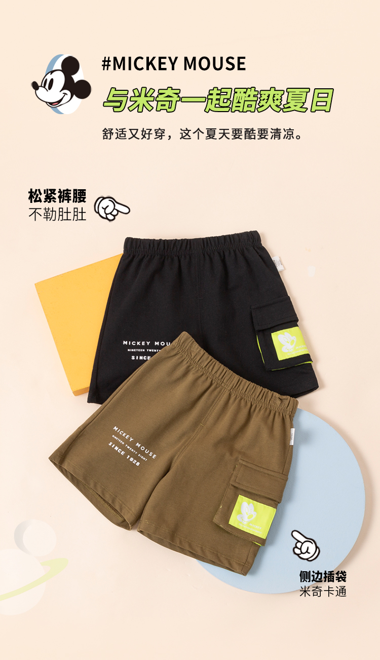 【商场同款】迪士尼童装 针织立体口袋五分裤男童夏季新款潮酷休闲裤米奇印花