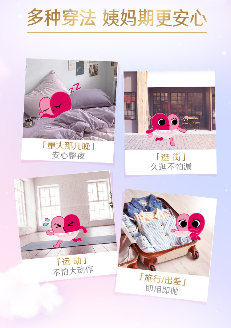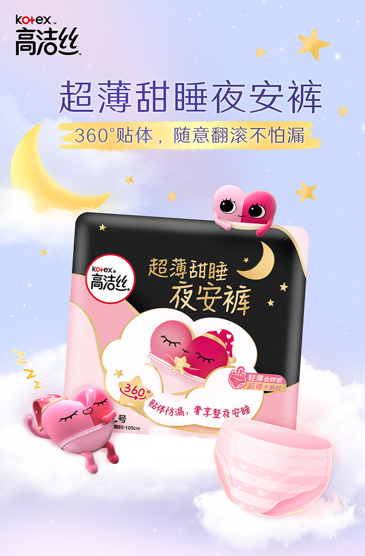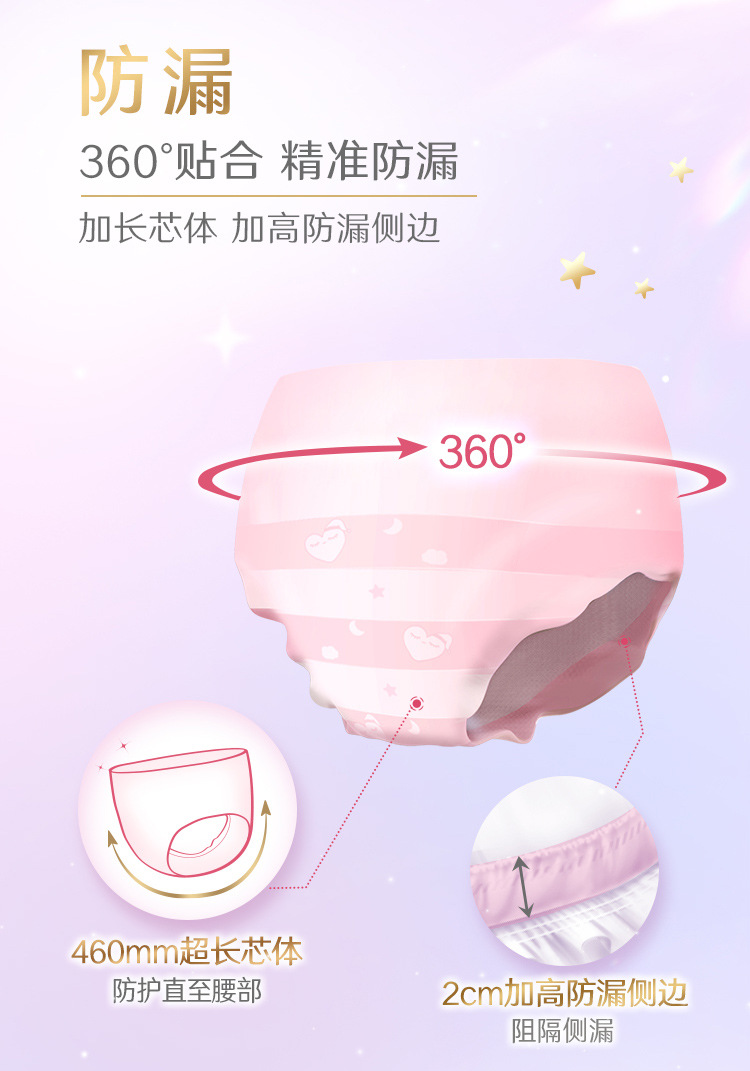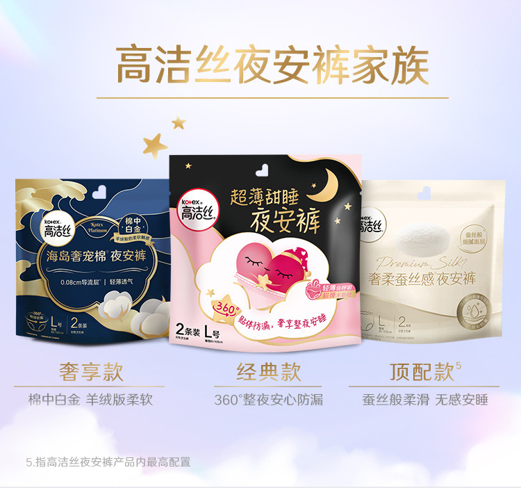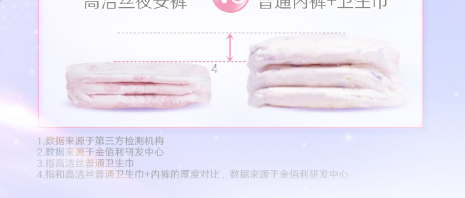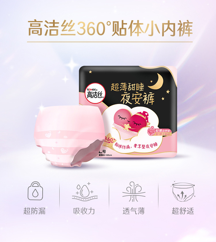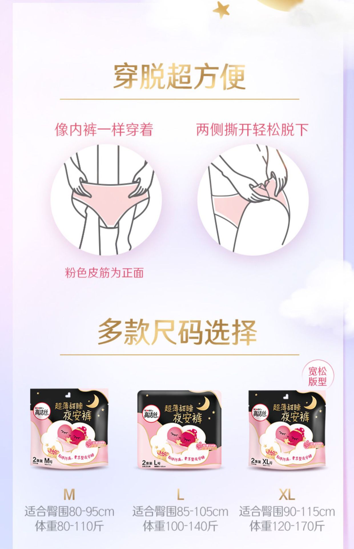 高洁丝安心裤卫生巾L/2条装 裤型夜安裤姨妈巾防漏蜜桃小姐