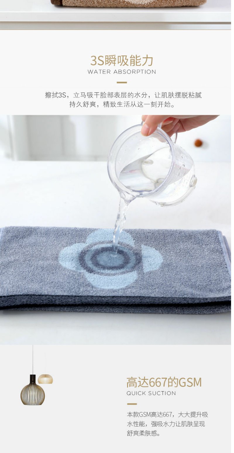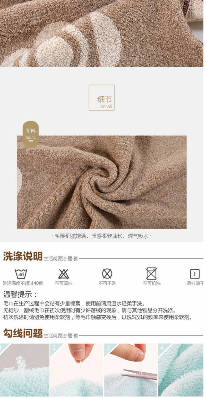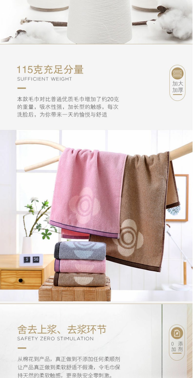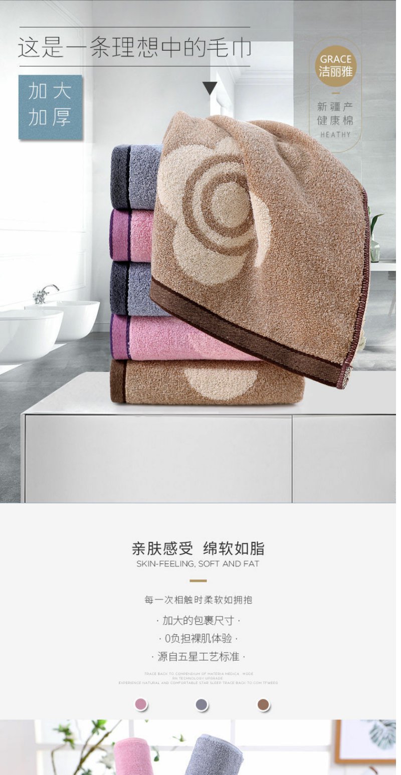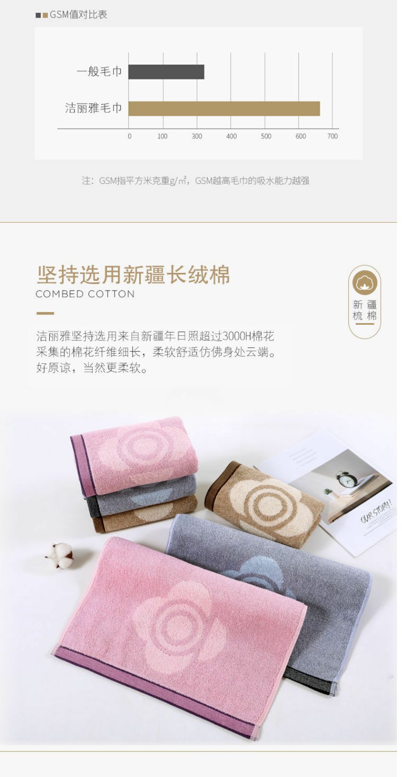 洁丽雅纯棉加厚家用洗脸巾柔软强吸水8992 76*35