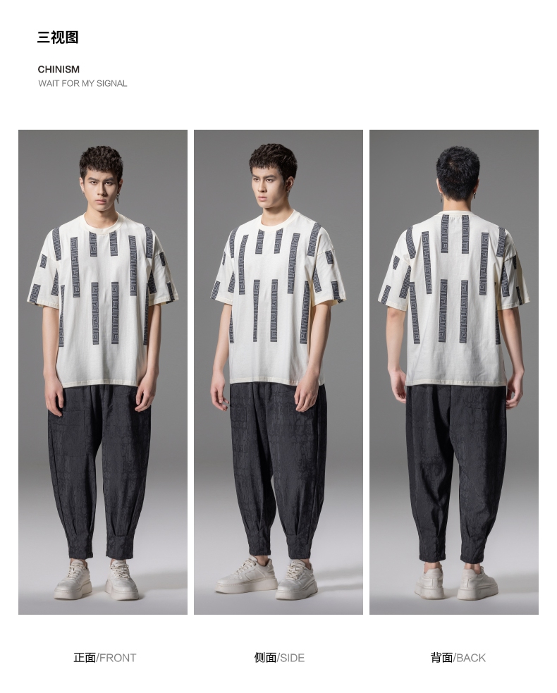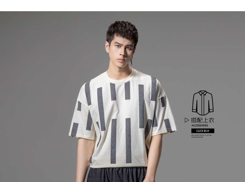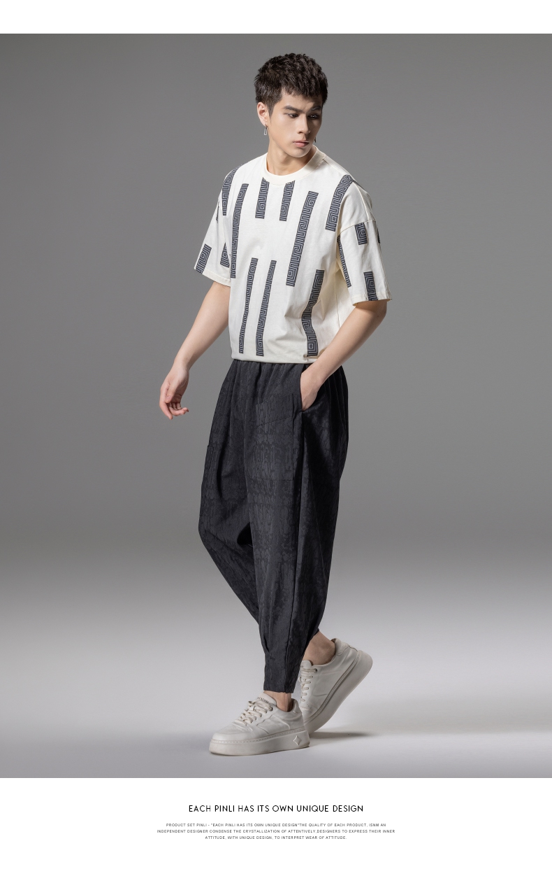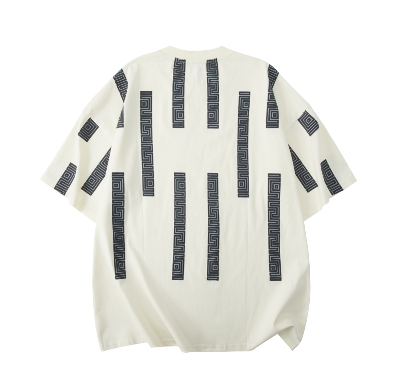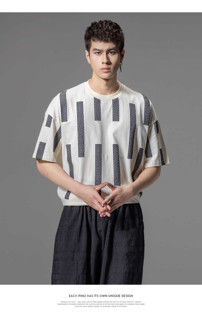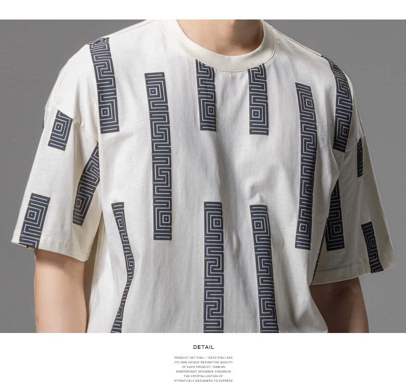 PINLI品立2024夏季新款印花杏色短袖T恤男士潮牌复古宽松休闲上衣B242111112