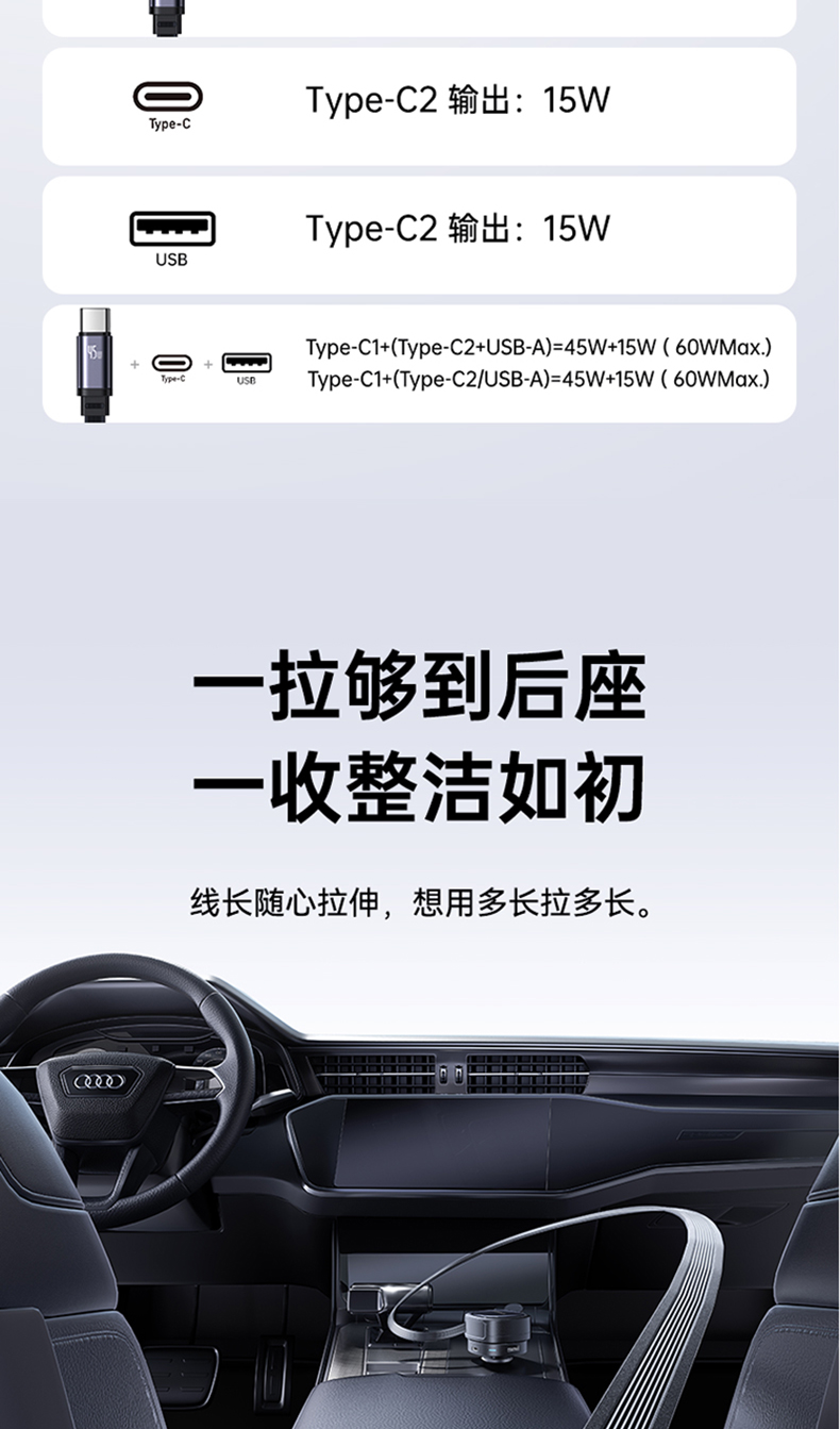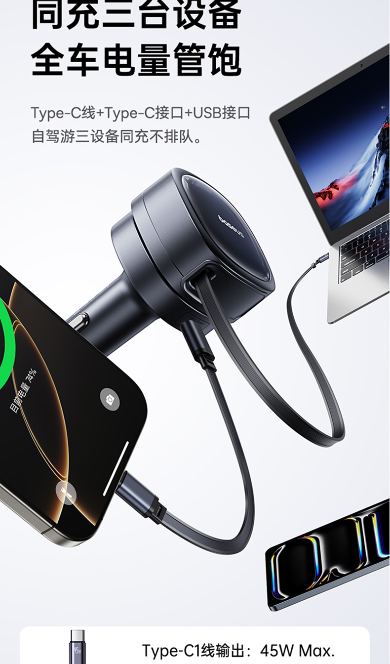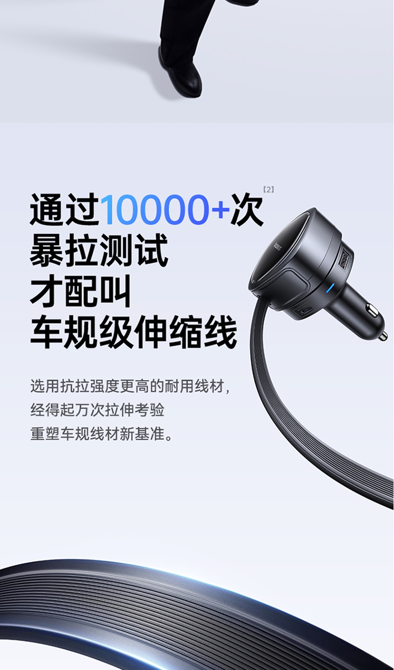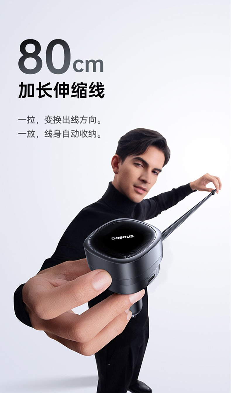 倍思 PrimeTrip VR1 伸缩线车载充电器 (U+C)+Type-C伸缩线 60W