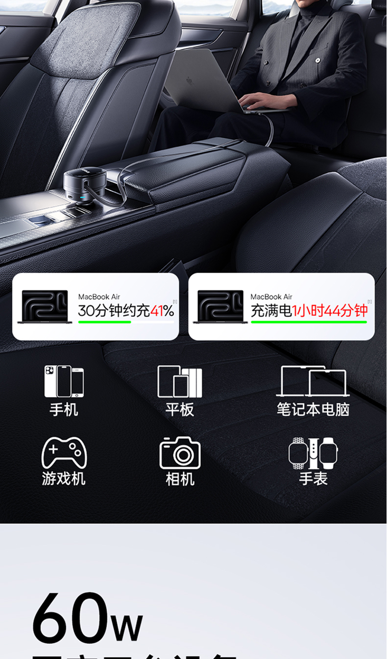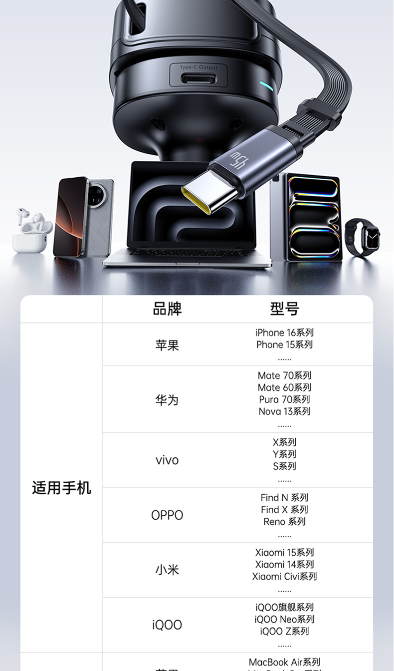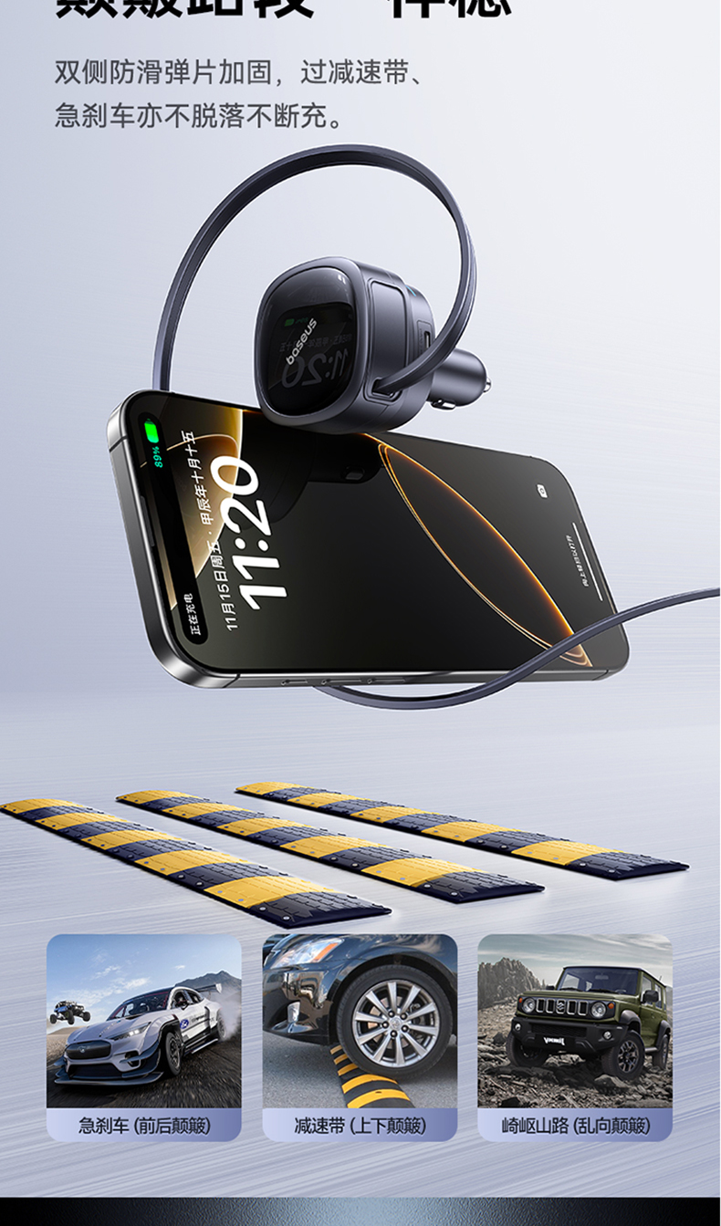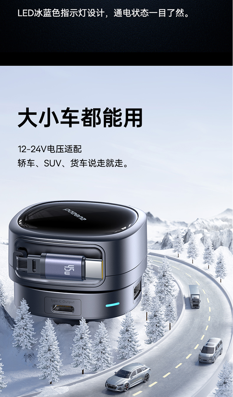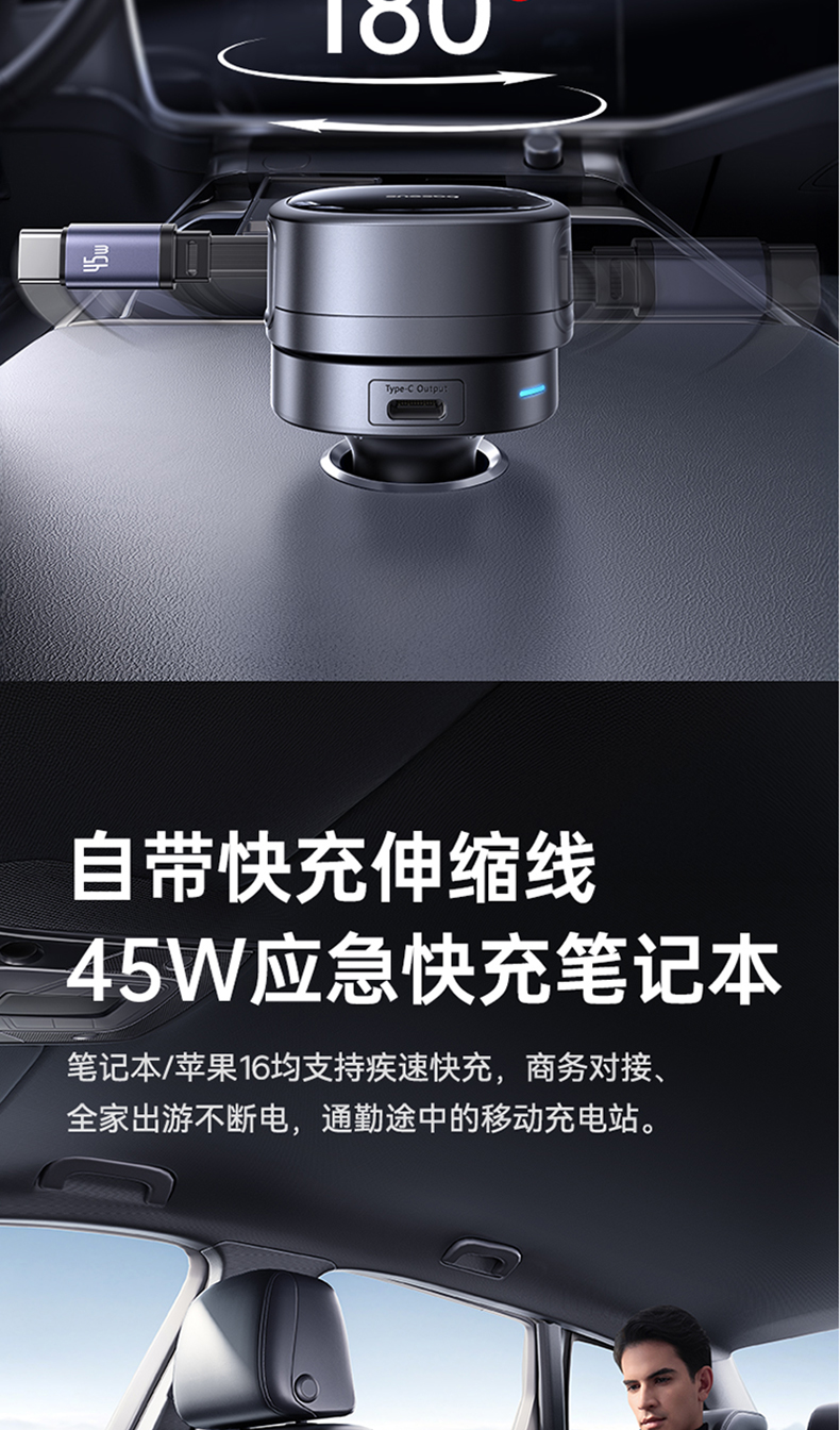 倍思 PrimeTrip VR1 伸缩线车载充电器 (U+C)+Type-C伸缩线 60W