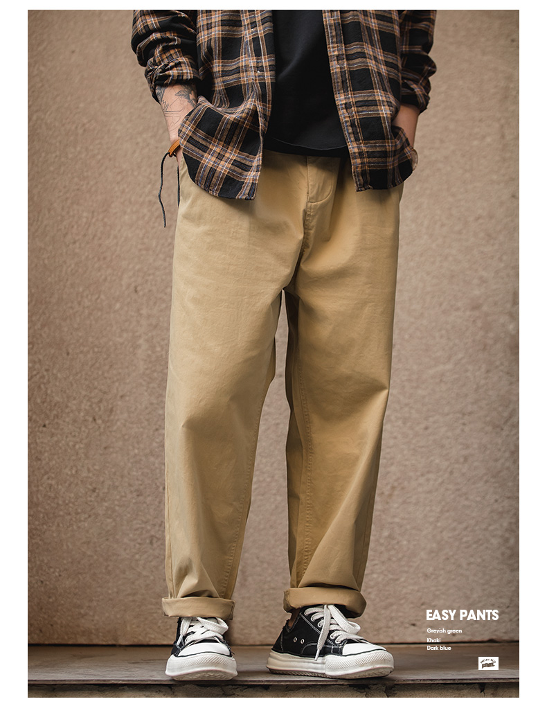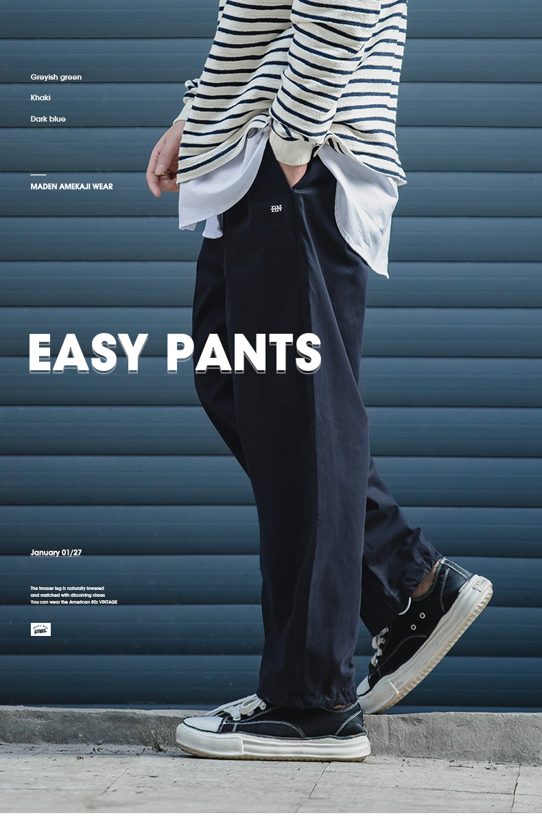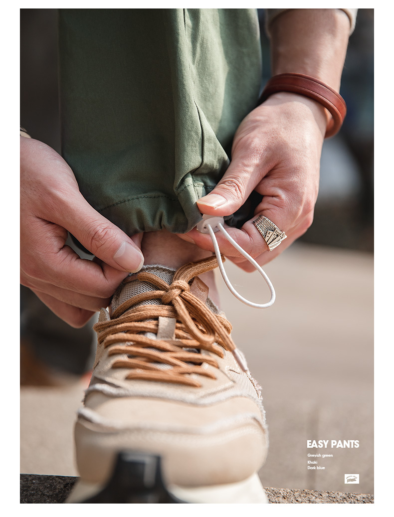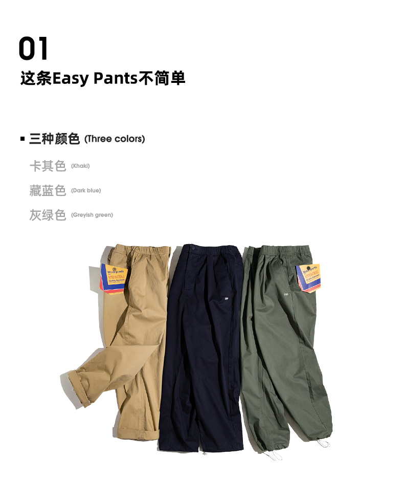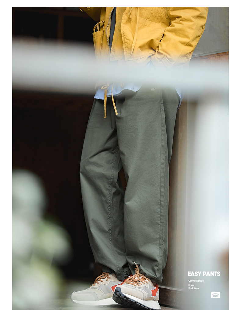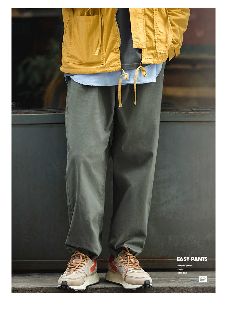 工装优选 日系复古Easypants宽松休闲裤春秋军绿松紧束脚长裤子男