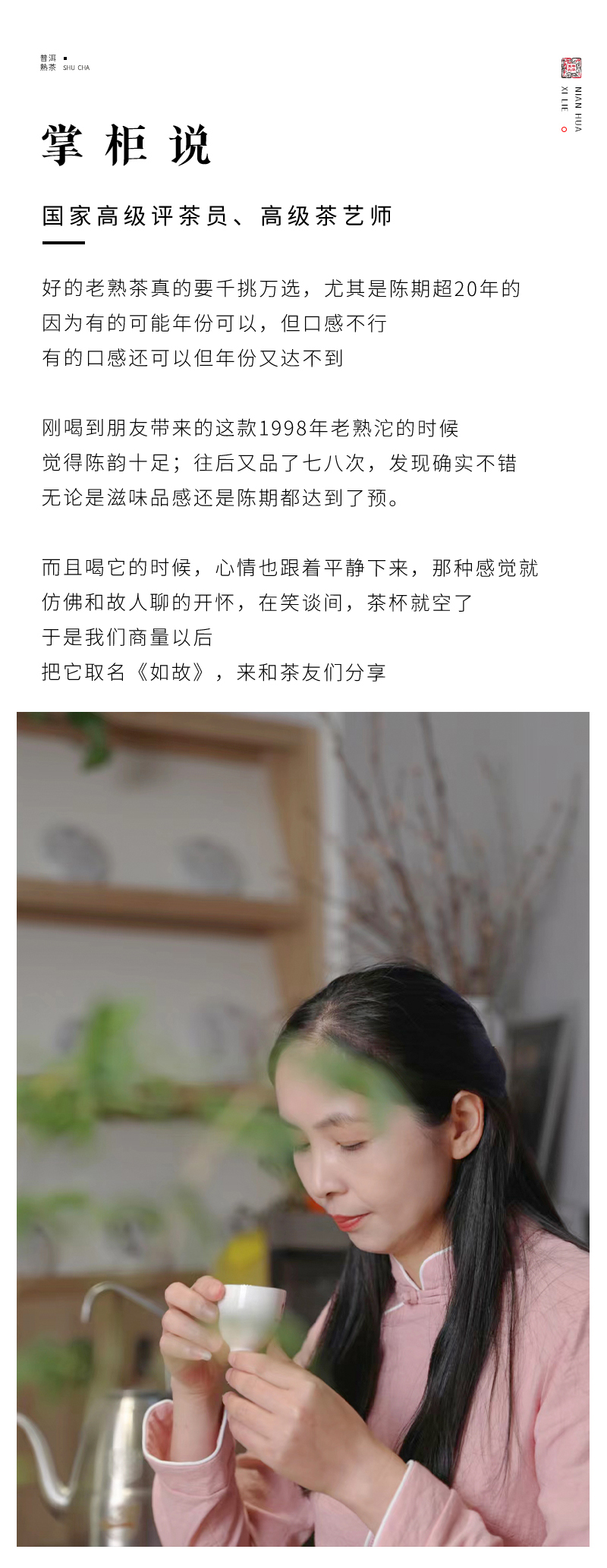 【买5送1】1998《如故》困鹿山熟茶沱 90克/沱
