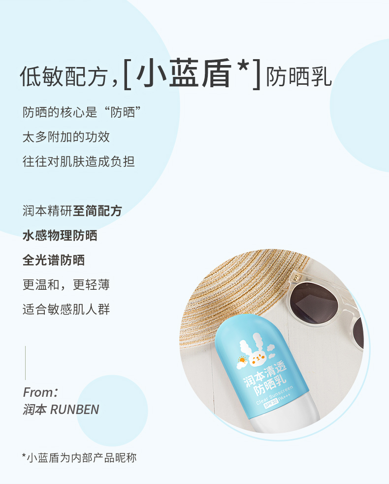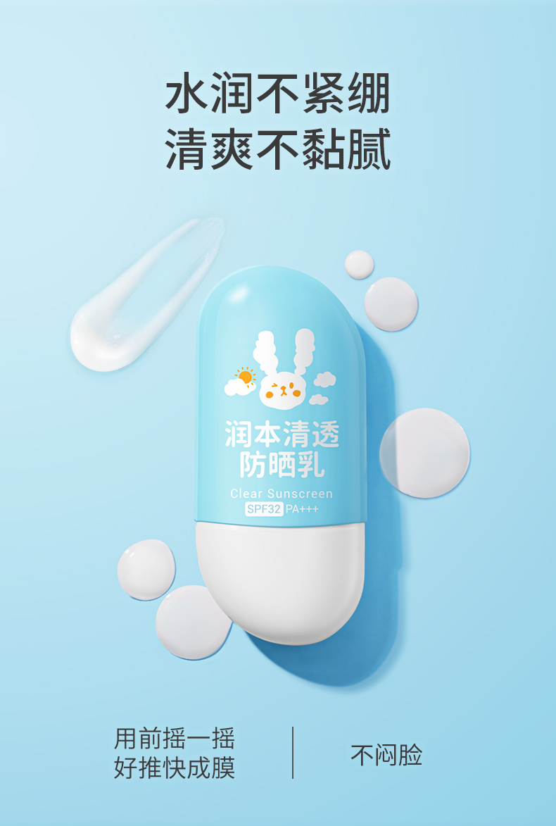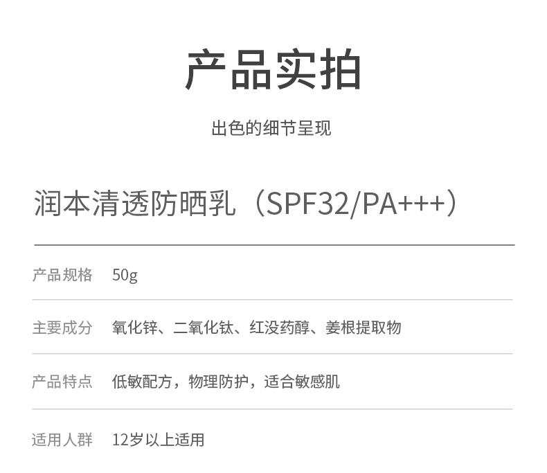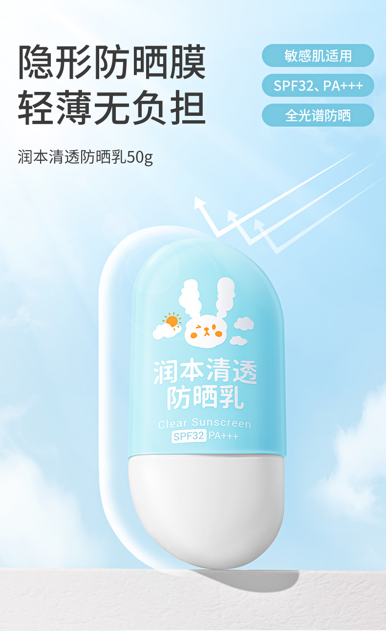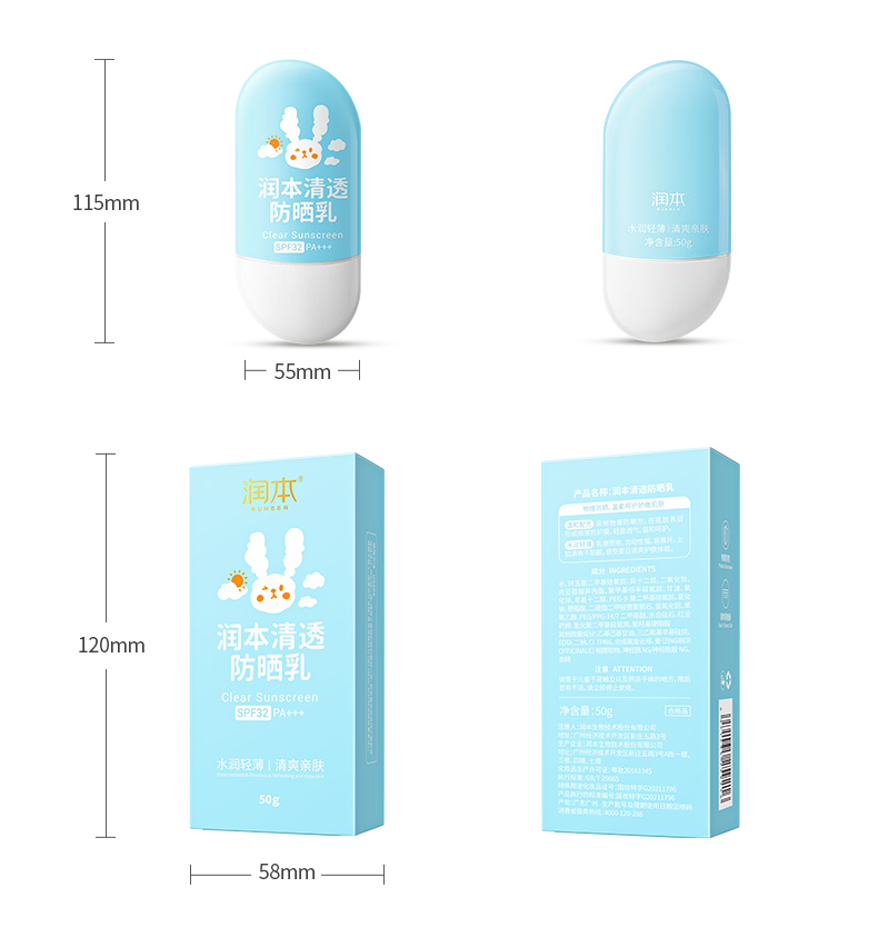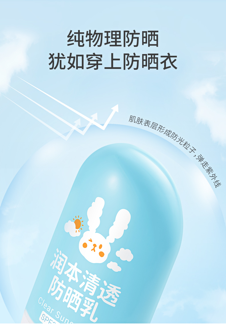 润本清透防晒霜隔离紫外线物理防晒乳50g装
