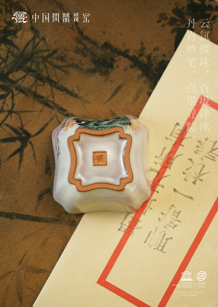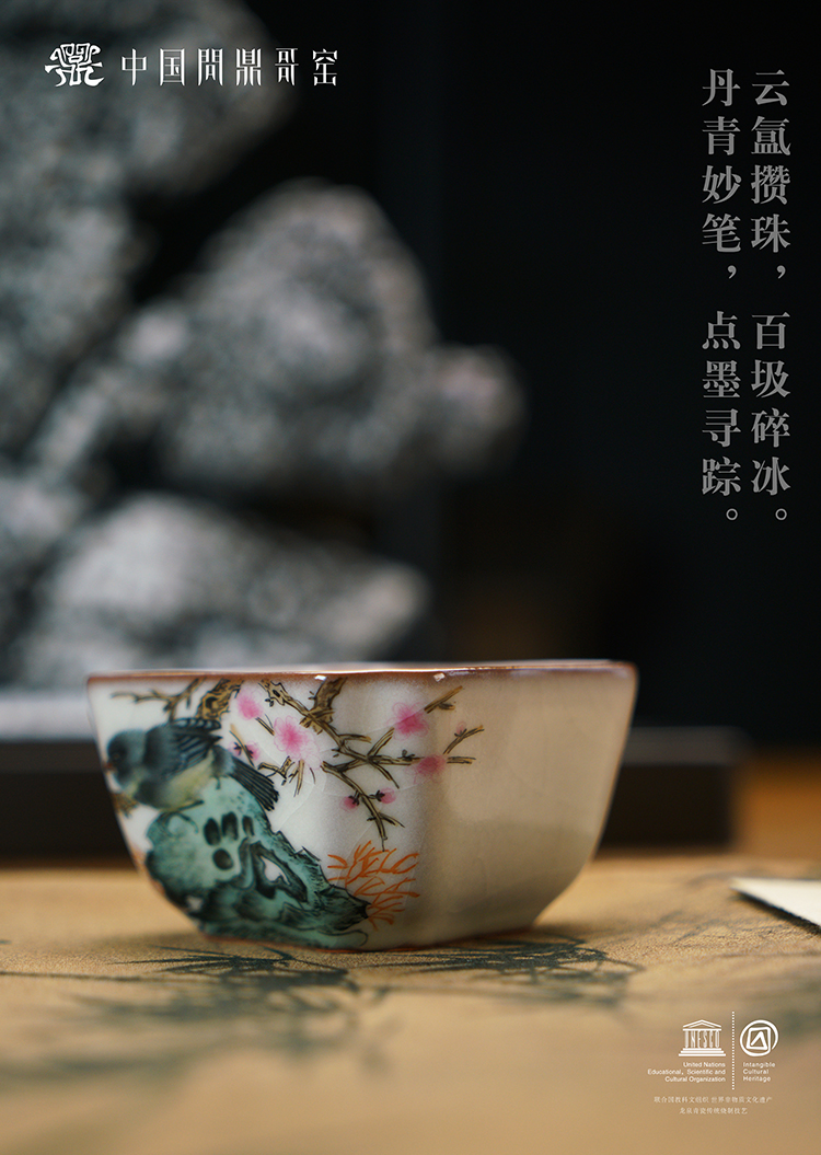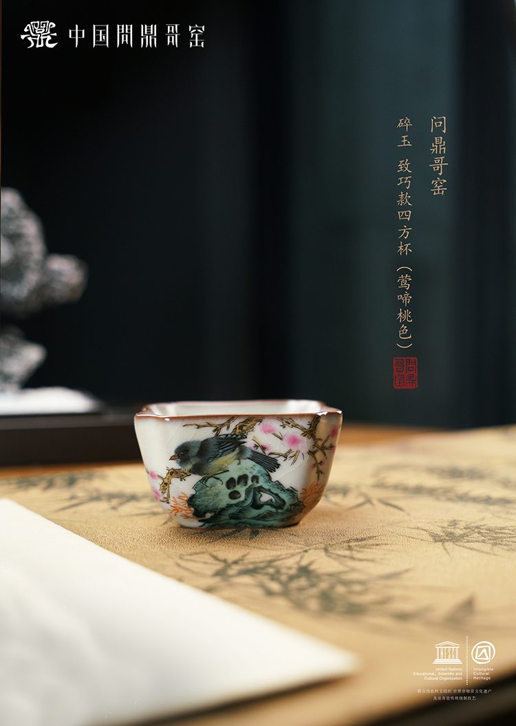 问鼎哥窑致巧款四方杯(莺啼桃色)(缺货)