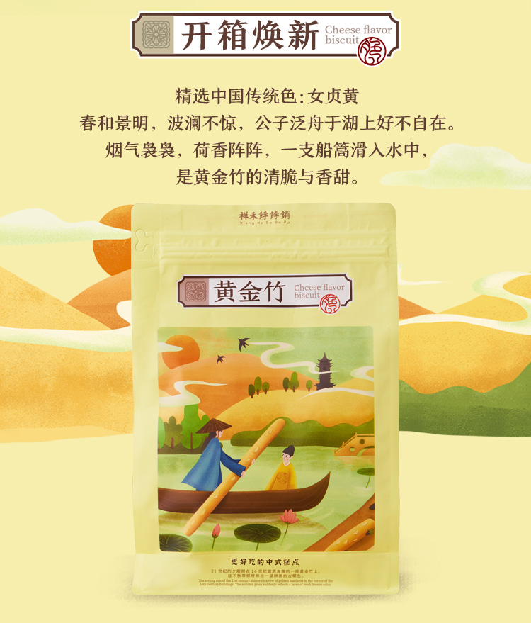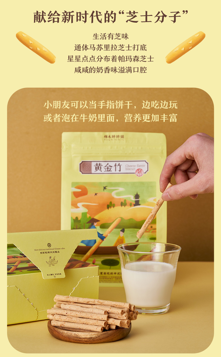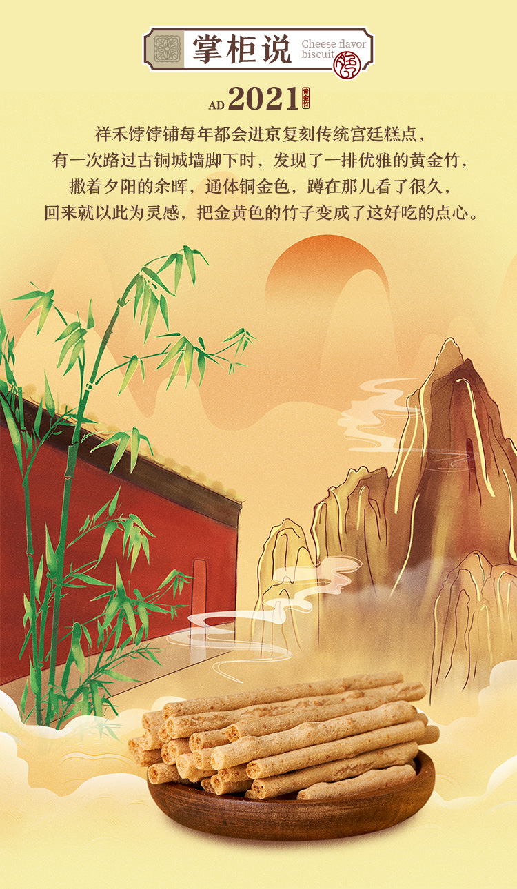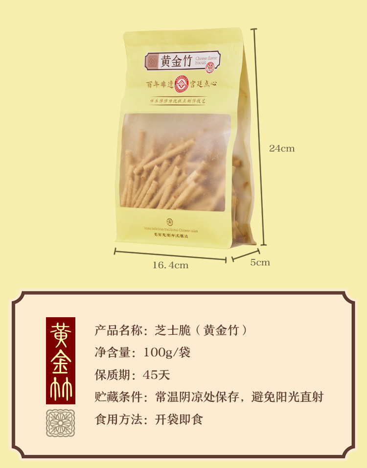 祥禾饽饽铺黄金竹(芝士脆) 办公室零食小吃 天津膨化食品休闲零嘴100g*3袋