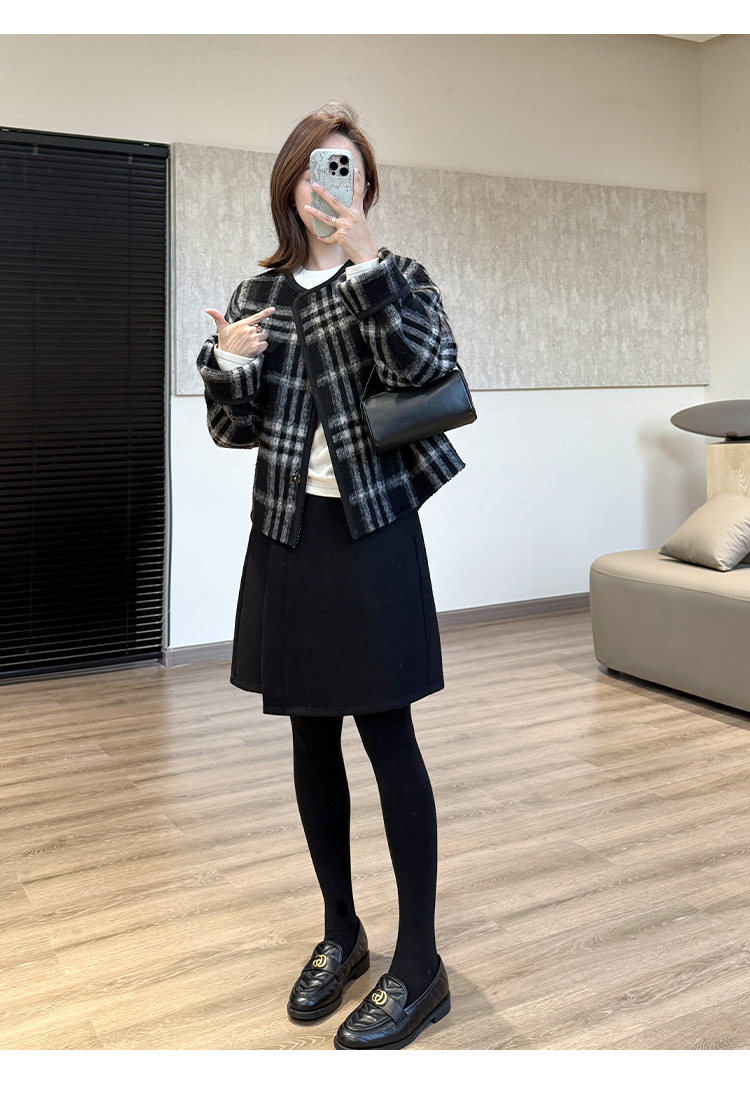 羊毛混纺纱线细腻,面料质地轻薄、纹路清晰 手感顺滑