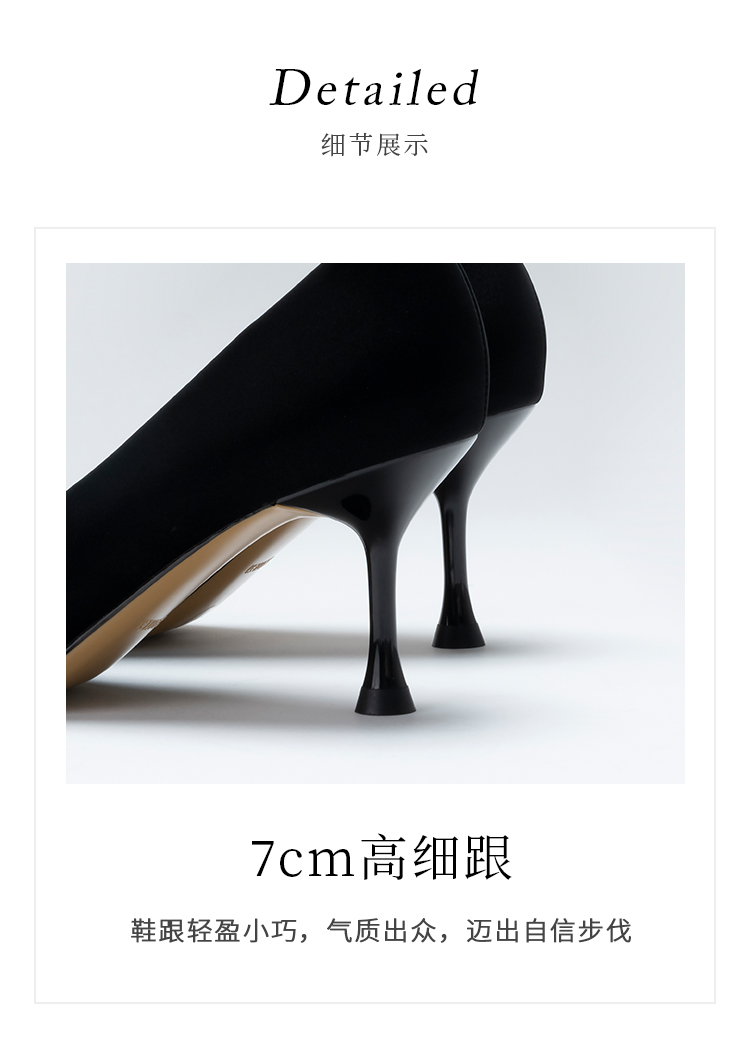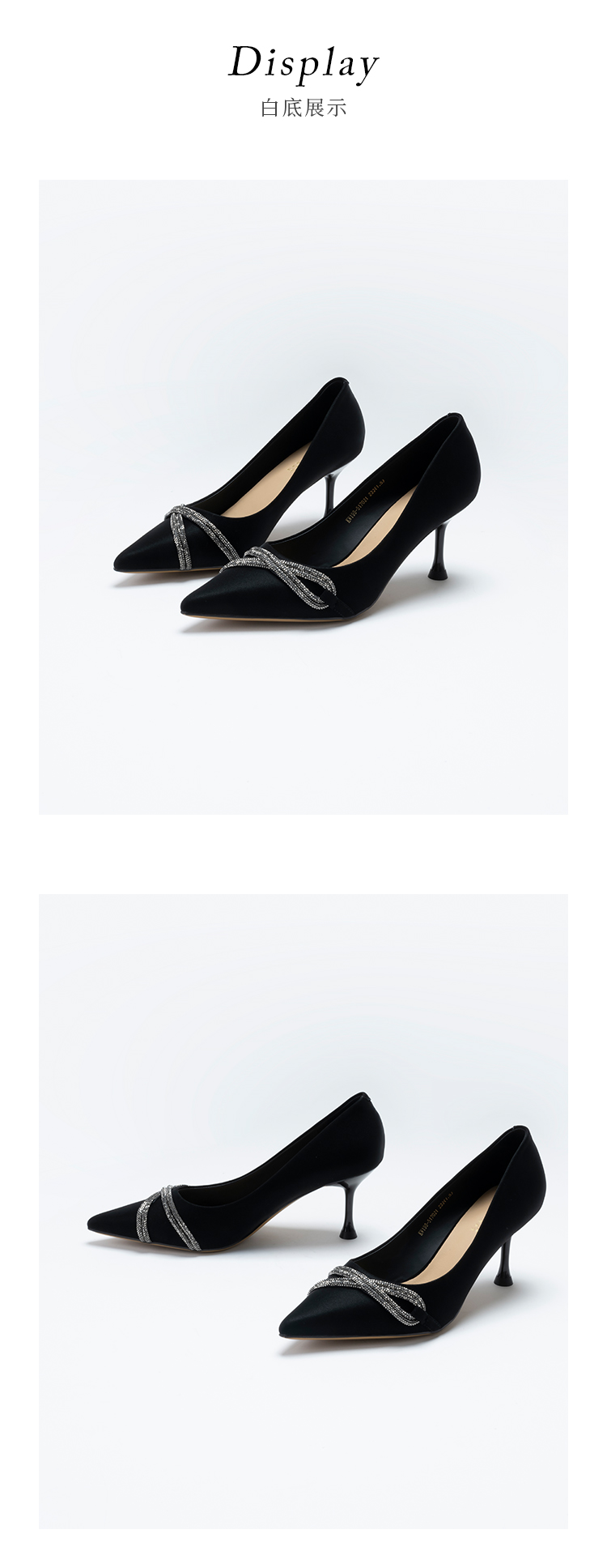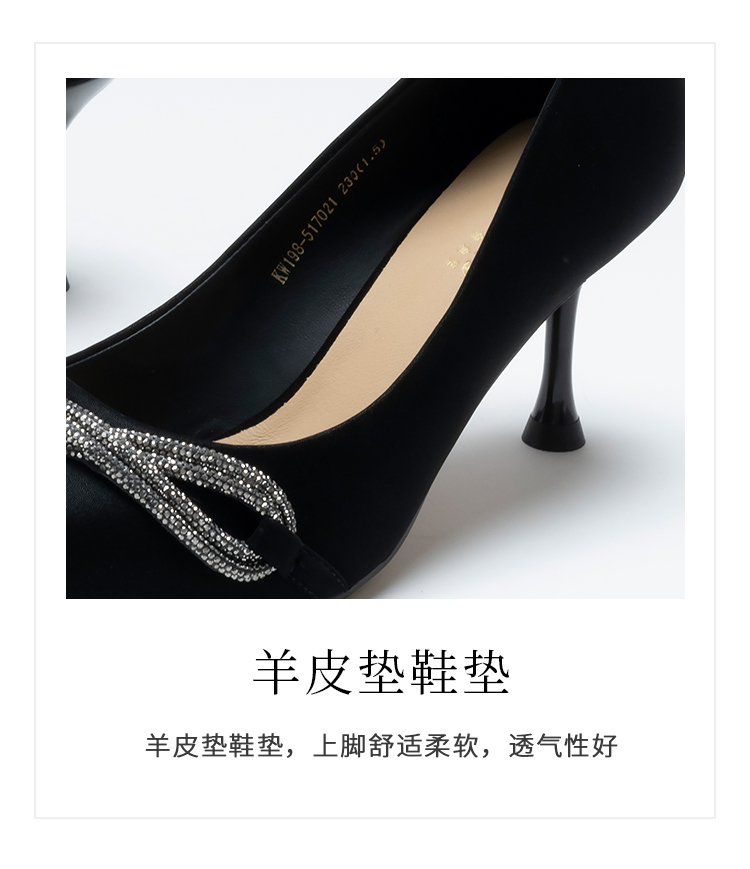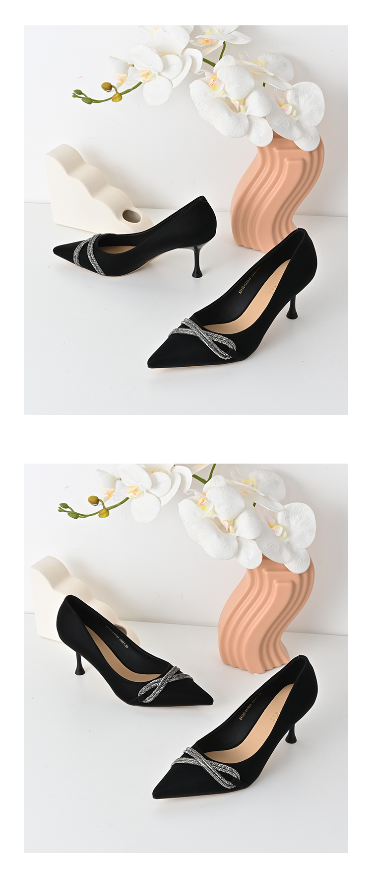 经典鲨2025年春季新品黑色优雅尖头7cm时尚水钻细高跟鞋子女KW198-517021