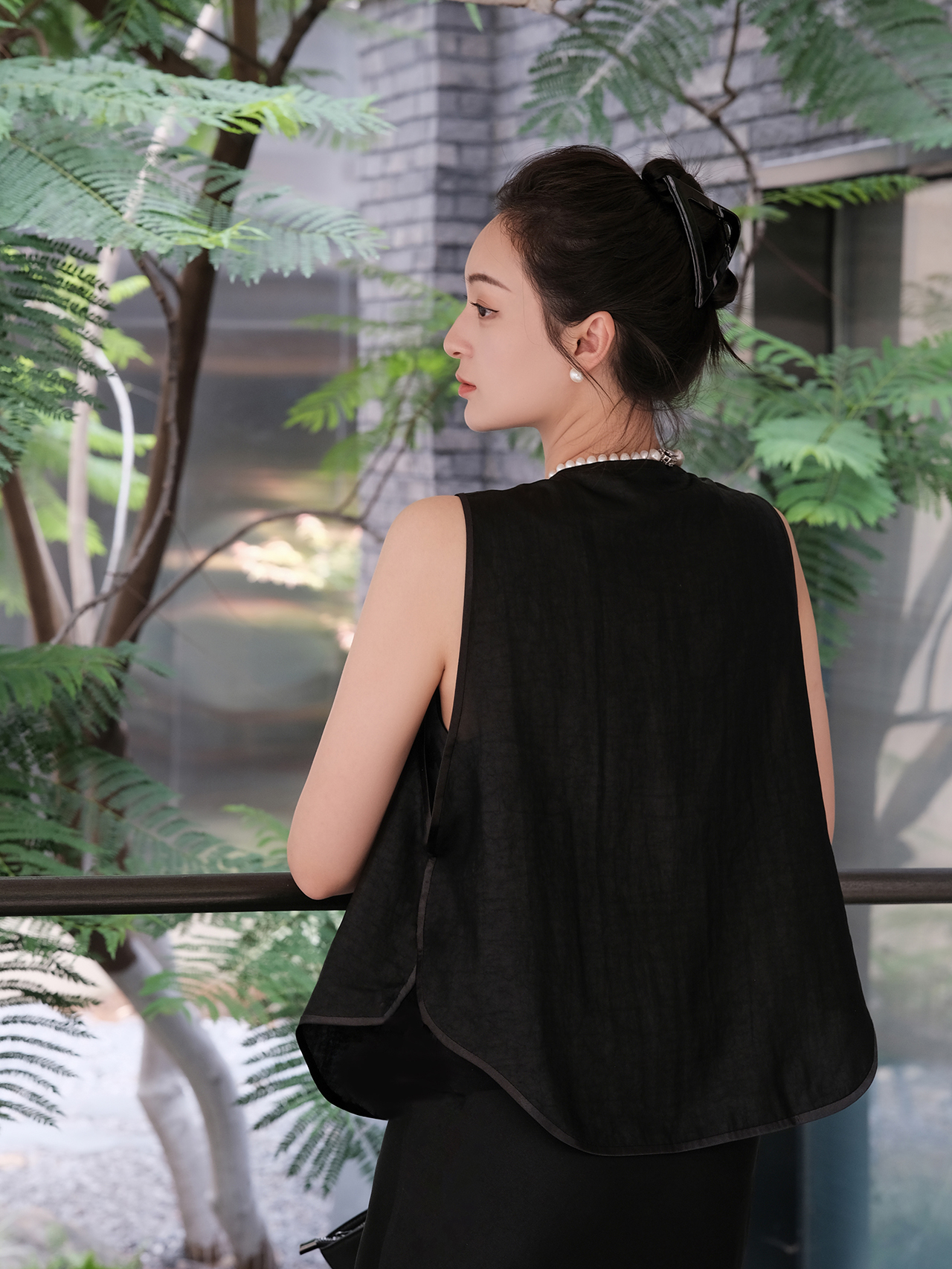 盛唐牡丹 |龟纹香云纱折扇扣马甲