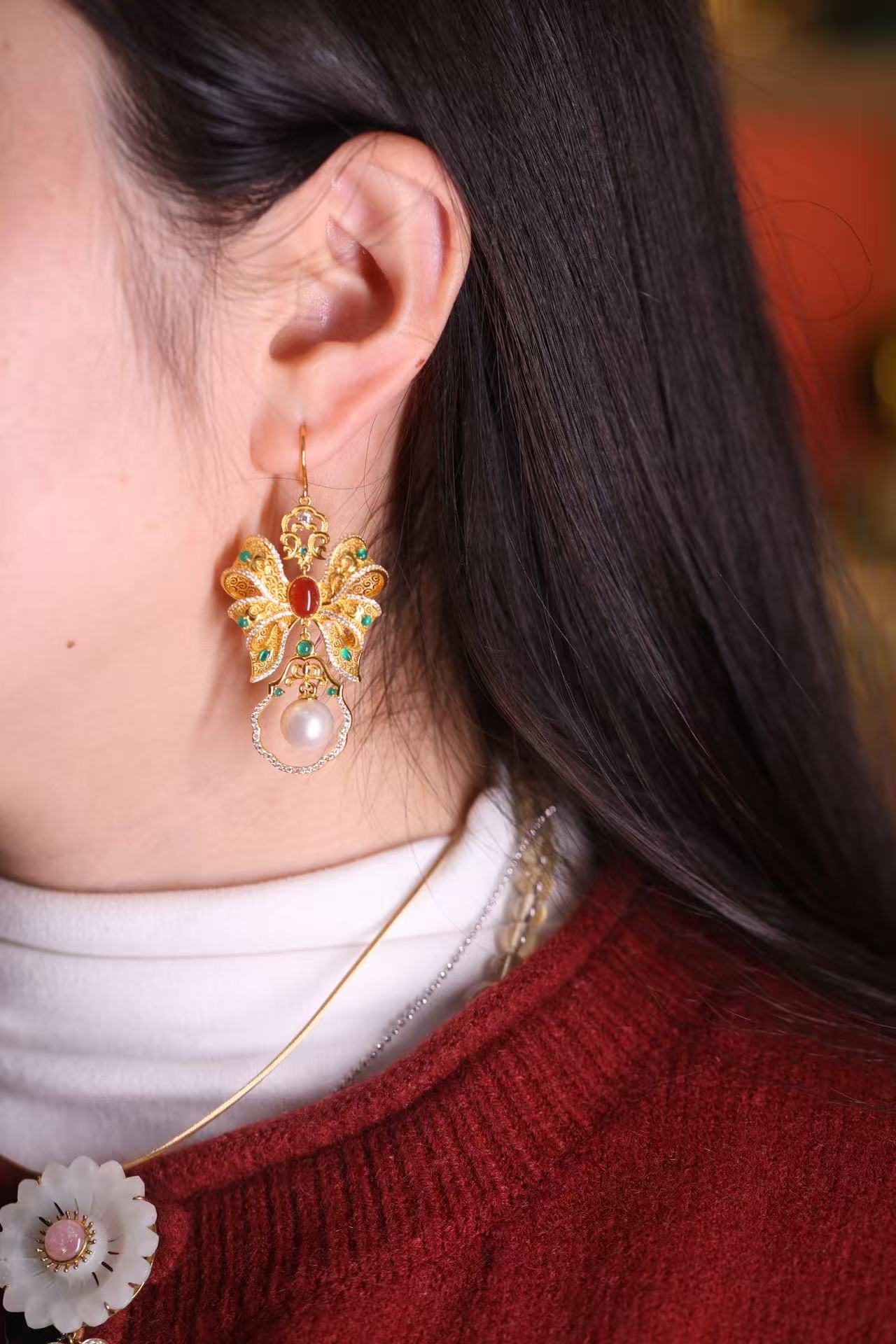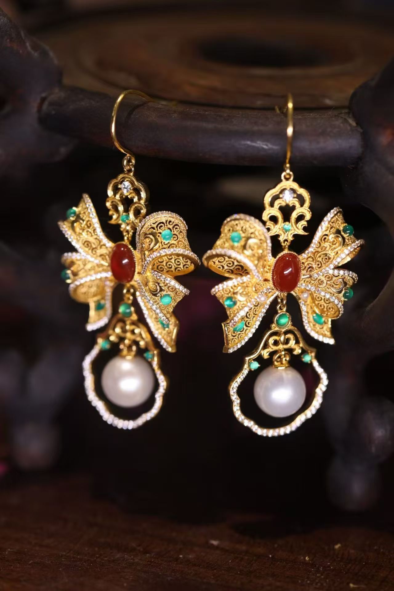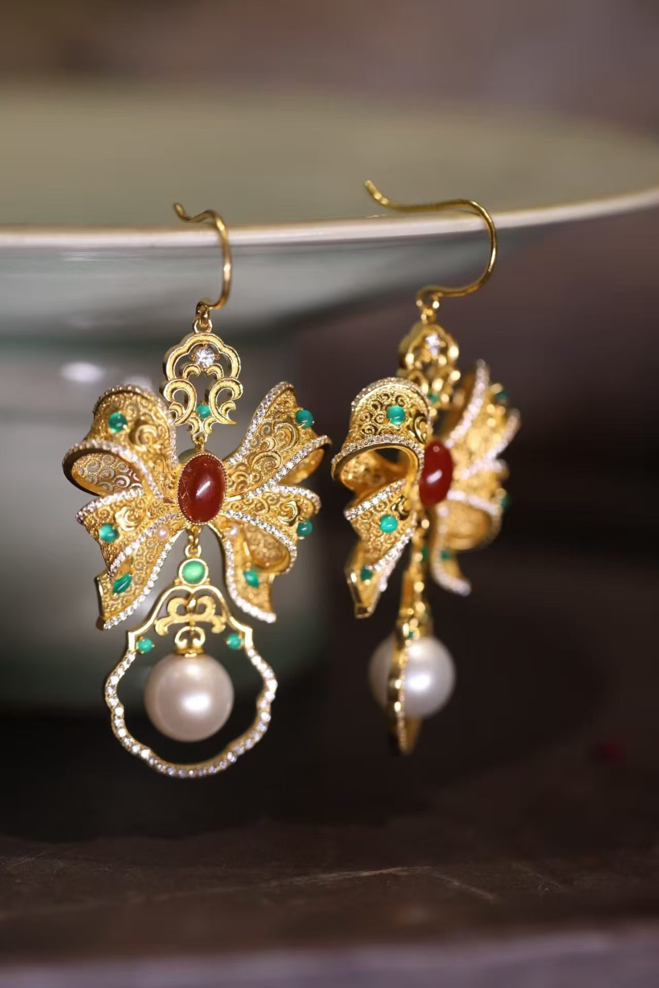 庭中蝶韵 花丝蝴蝶结耳环 JD
