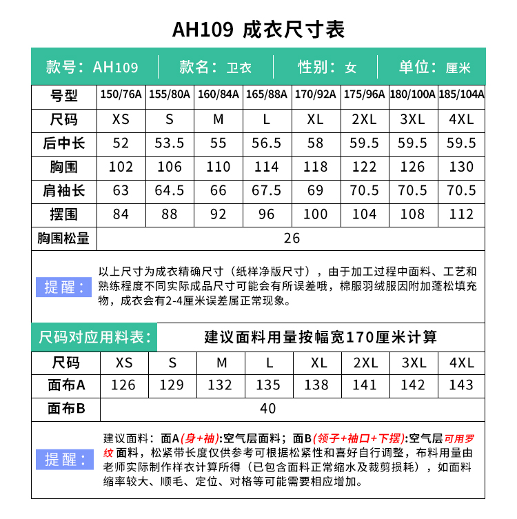 裁缝学苑AH109新款设计感撞色假两件卫衣纸样连肩袖女装打版裁剪图纸
