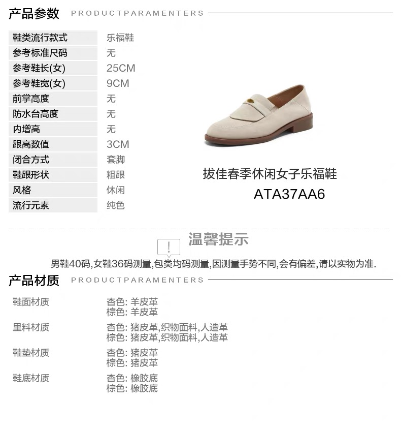 【云粉节】 【拔佳】BF楼Bata乐福鞋女2026春款英伦羊皮通勤软底一脚蹬ATA37AA6