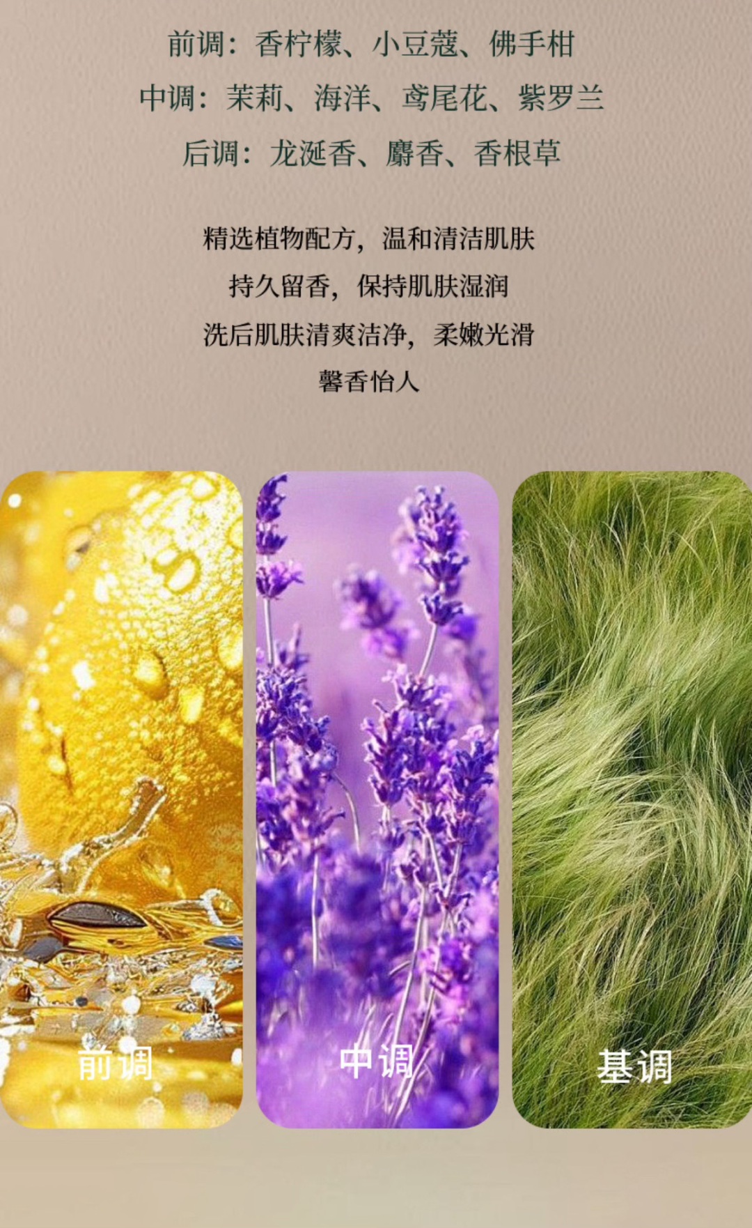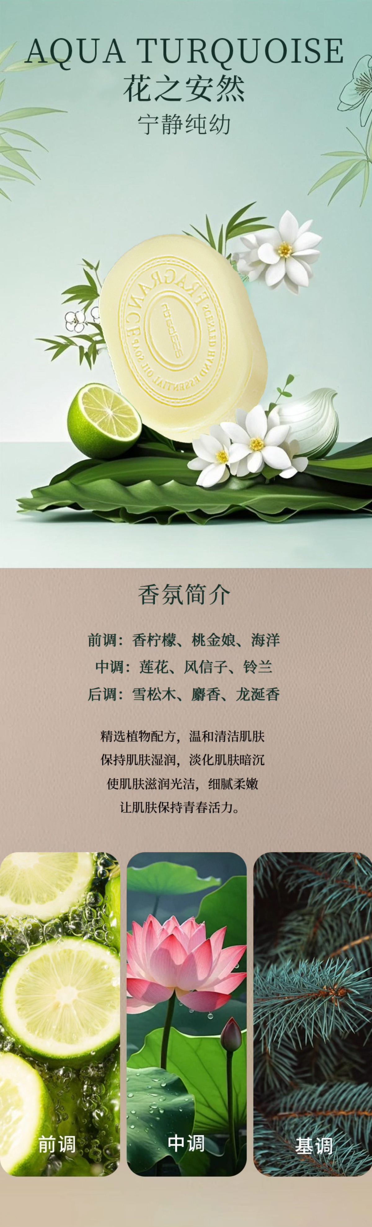 花之安然·宁静纯幼:前调香柠檬、桃金娘与海洋气息带来澄澈清爽,仿佛置身北欧清晨;中调莲花、风信子与铃兰的组合宛如漫步北欧湖畔,纯净淡雅;后调雪松木、麝香与龙涎香沉淀出宁静质感。