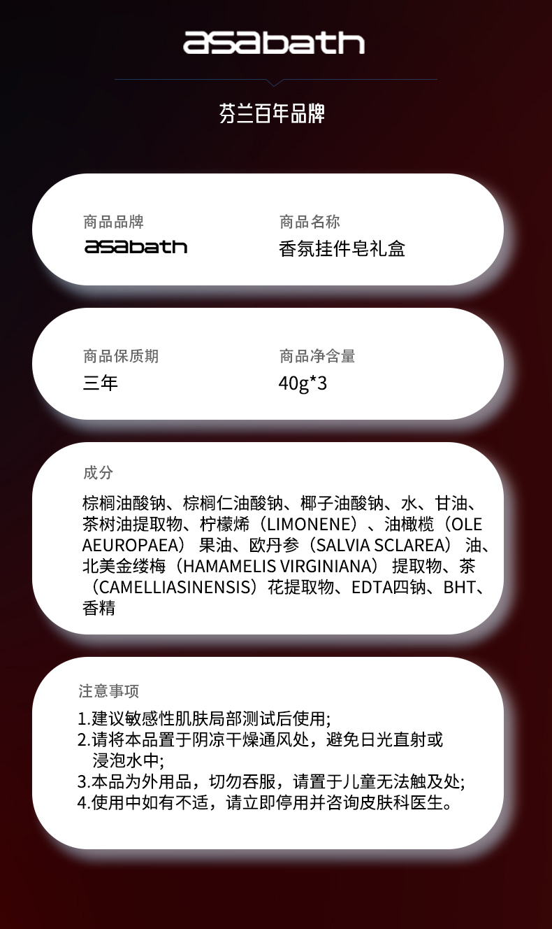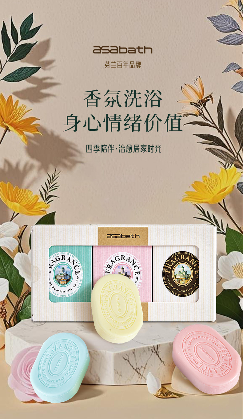 上一套小皂皂,来自芬兰的百年品牌asabath,秉持BE YOU FOR YOU,从心享受的初心,将北欧森林的清冽纯净与花卉的馥郁芬芳融入香氛,一块精油皂、一枚香挂,便为日常居家时光注入满格治愈力,让每一次清洁、每一缕香气,都成为与自我对话的温柔仪式。