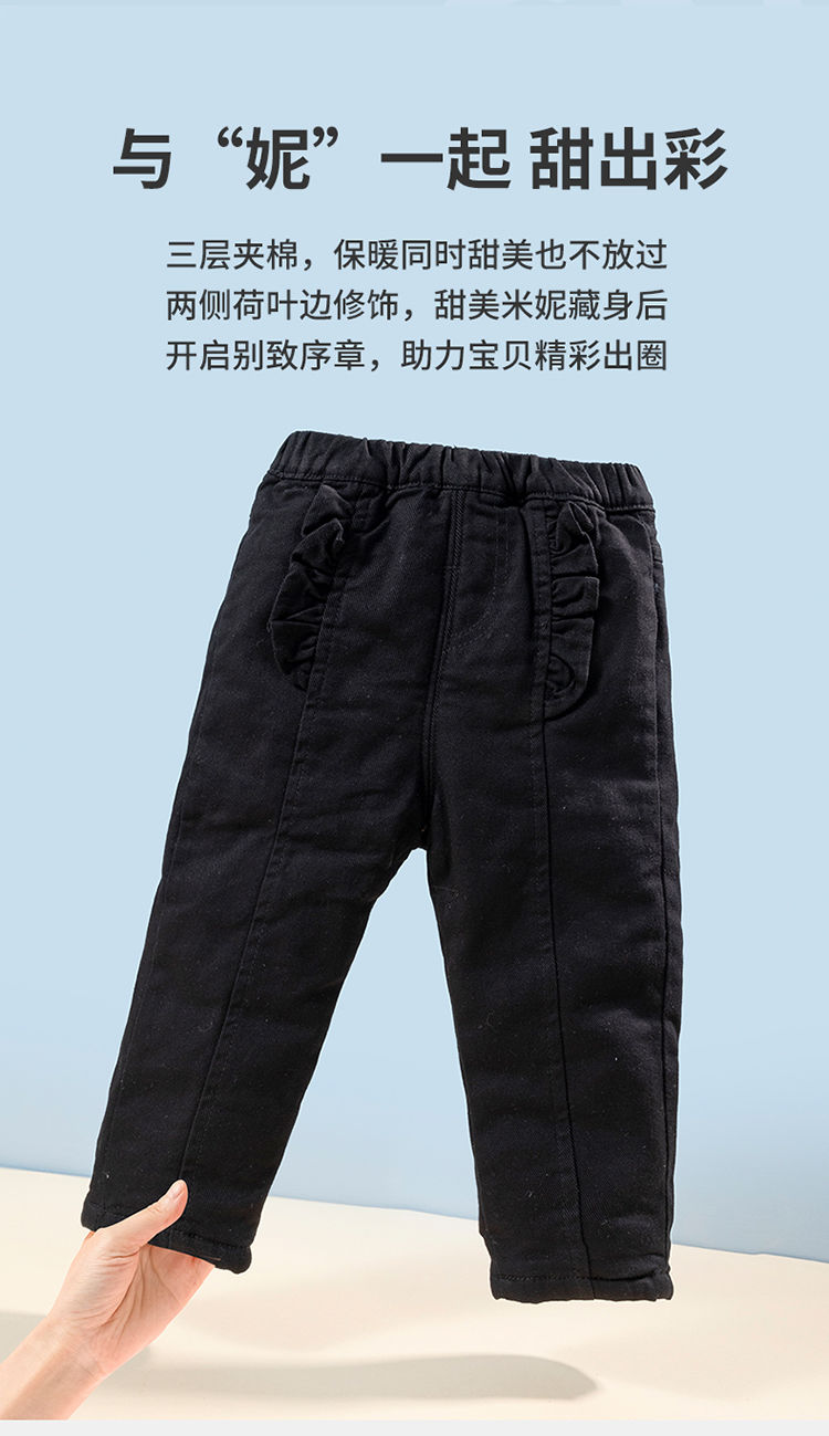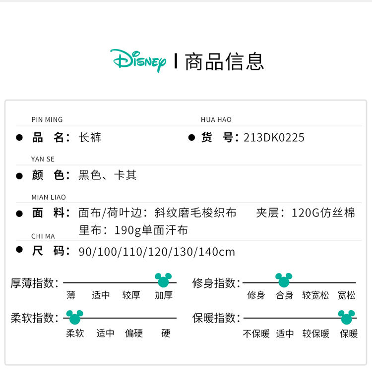 【商场同款】迪士尼童装女宝宝休闲长裤秋冬装时尚儿童保暖加绒裤子宽松长裤213DK0225