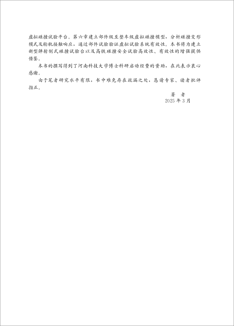 新 型 弹 射 制 式 碰 撞 试 验 台 以 及 高 铁 碰 撞 安 全 试 验 高 效 性 、 有 效 性 的 增 强 提供借鉴 。
