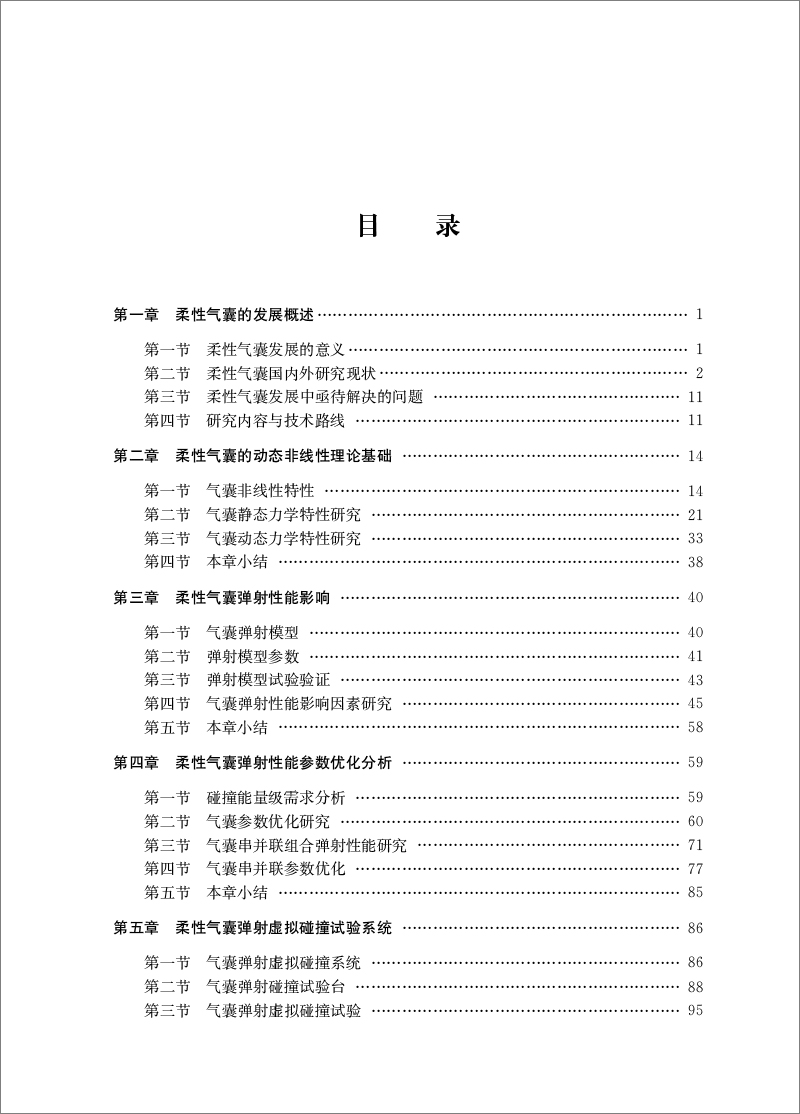 本 书 通 过 试 验 获 得 气 囊 材 料 本构 关 系 , 基 于 有 限 元 分 析 方 法 建 立 动 态 、 静 态 力 学 模 型 , 通