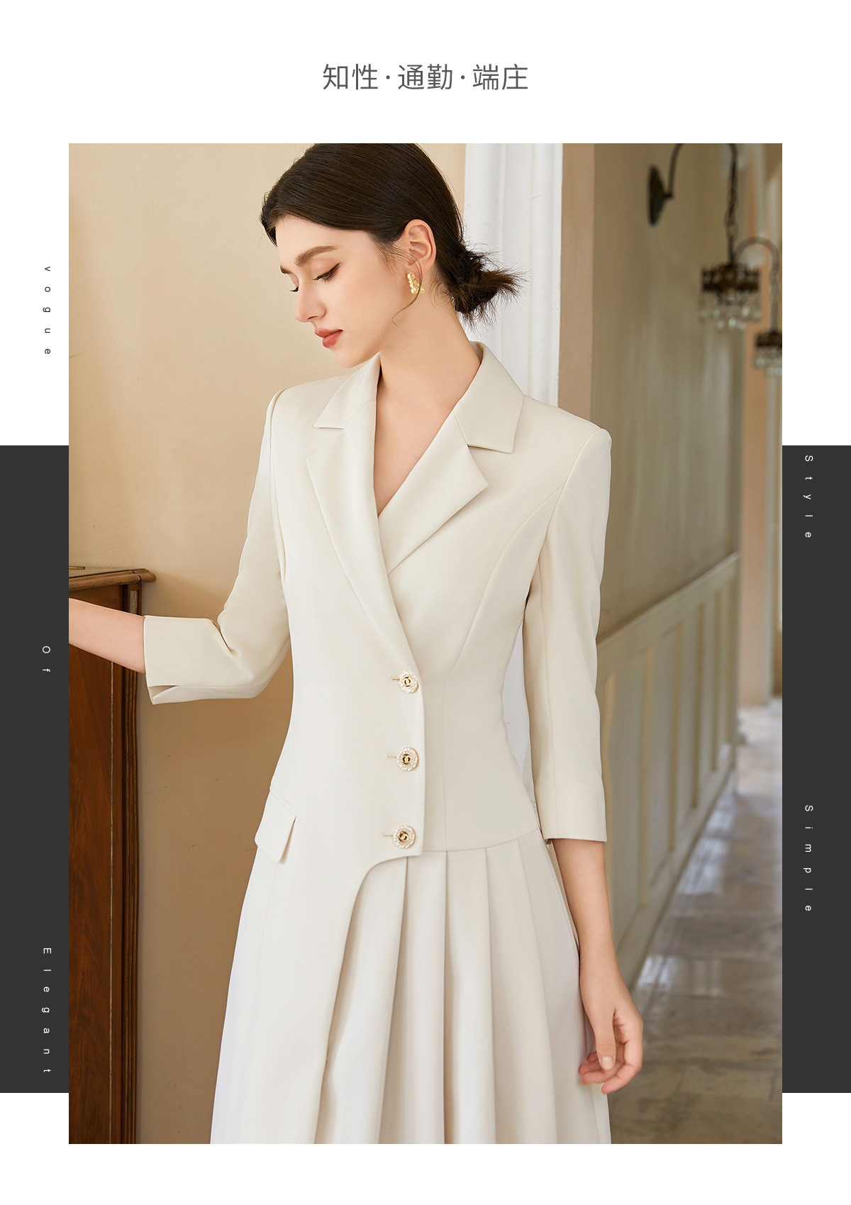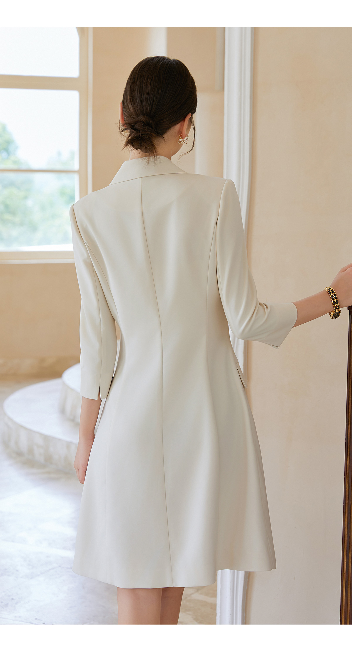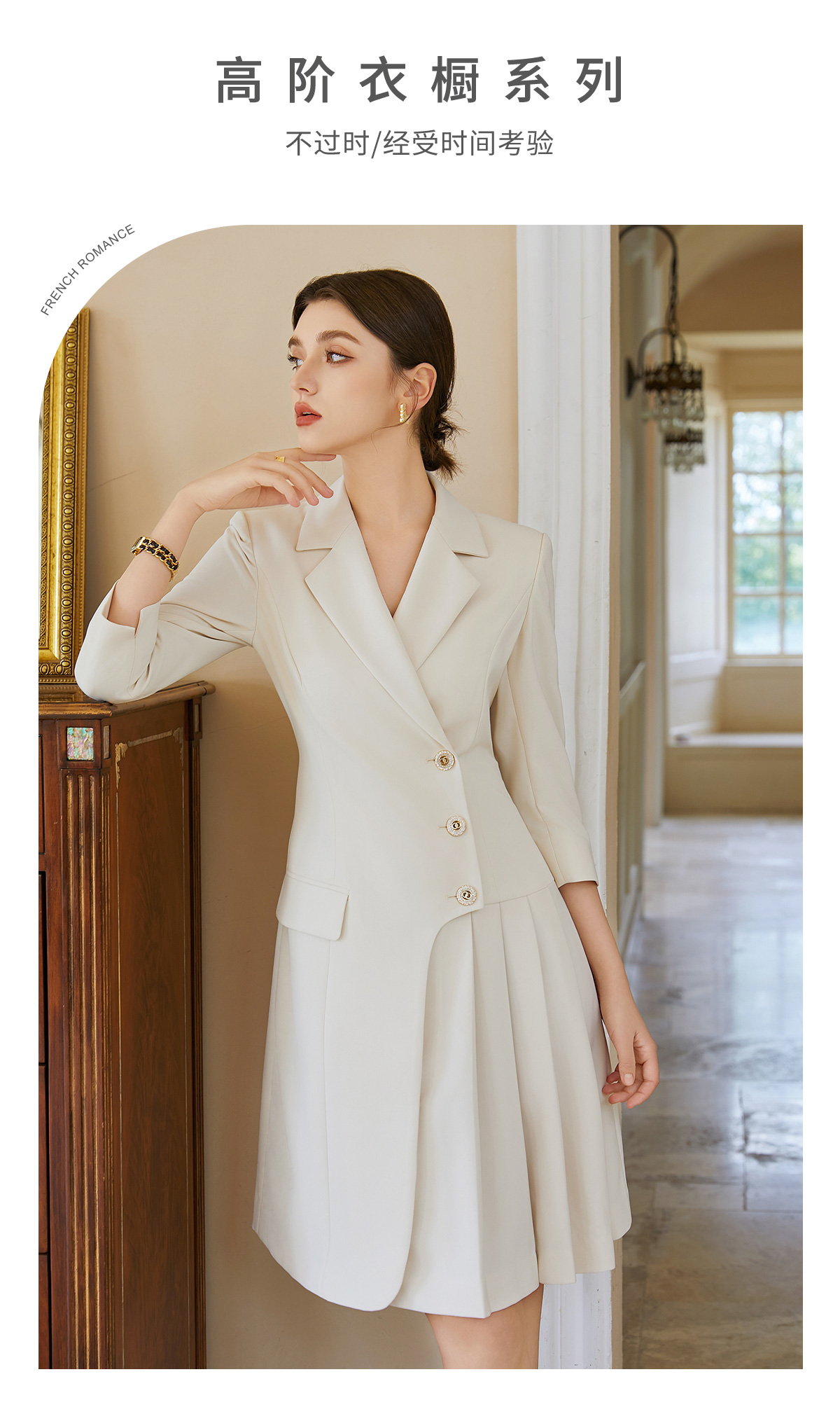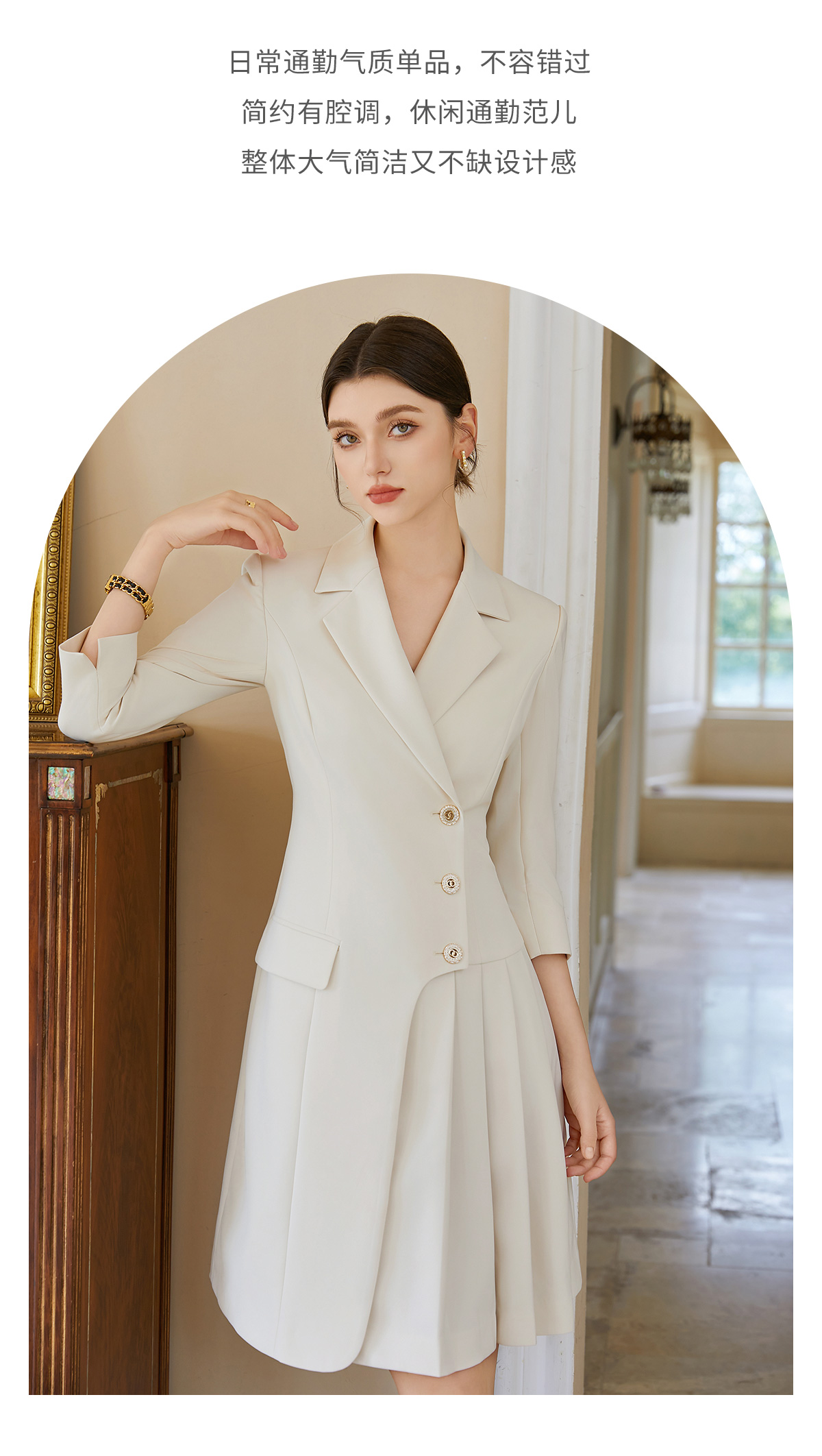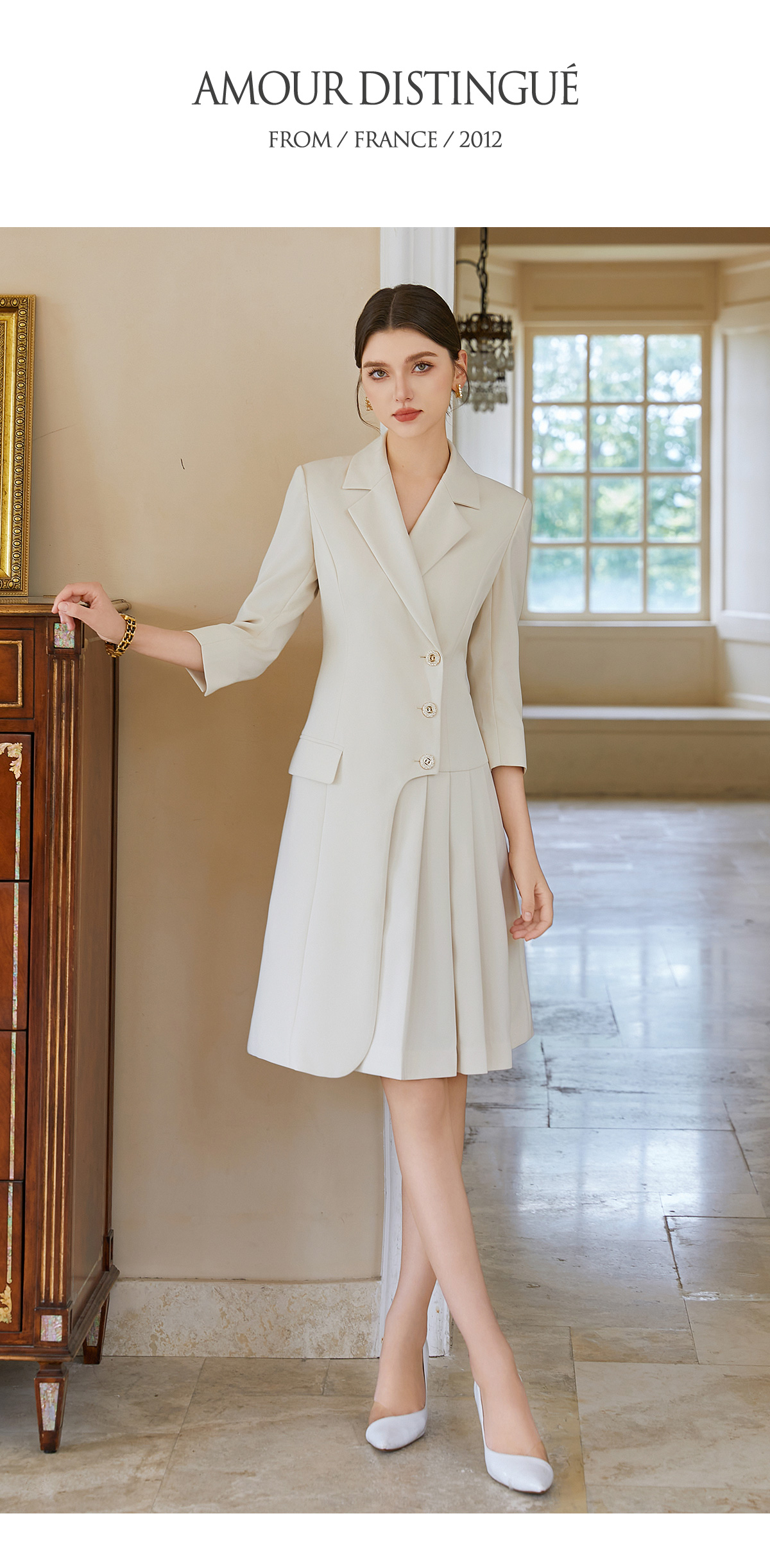 AD米色连衣裙女2024新款夏季轻奢高级感百褶裙主持人演讲职业装