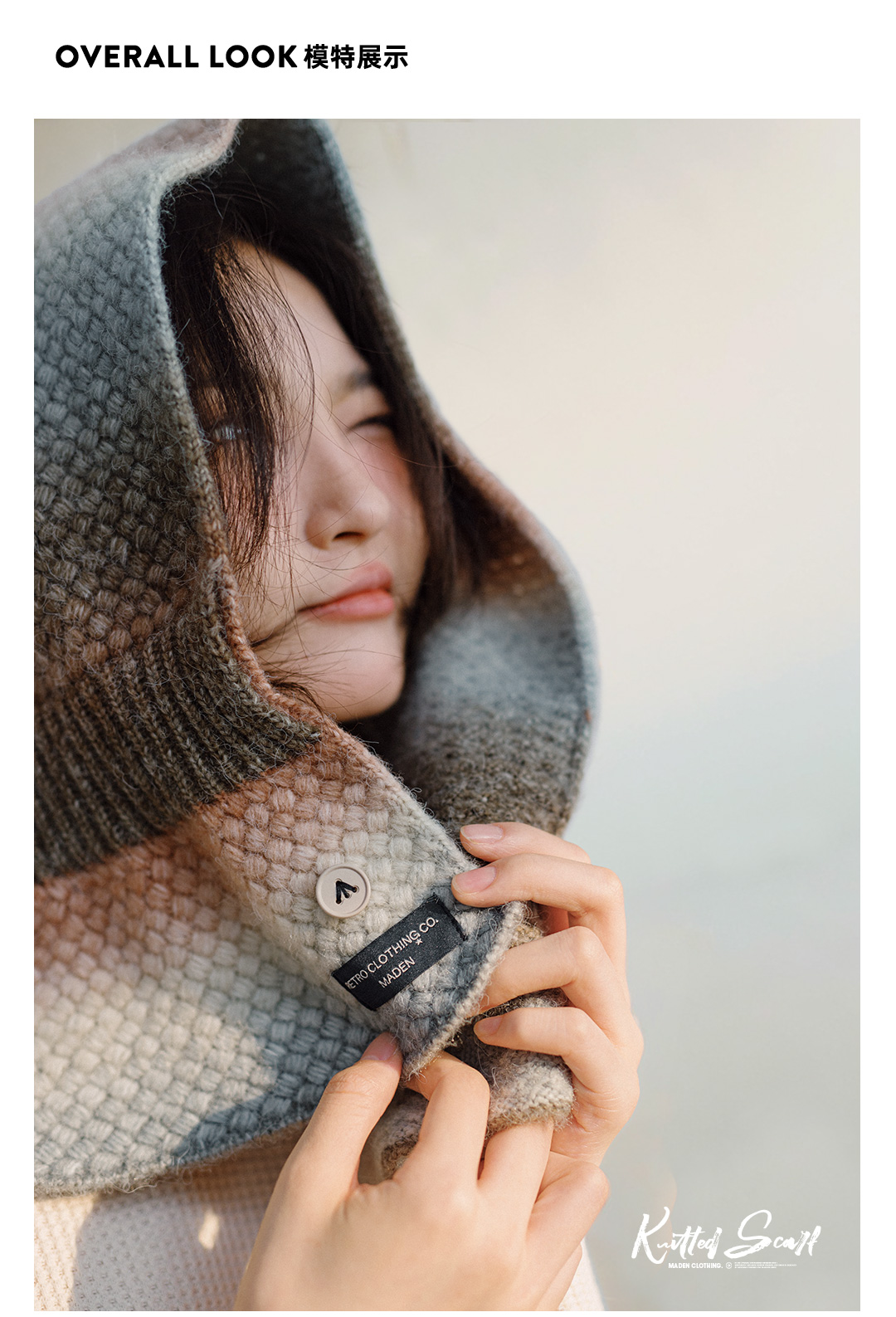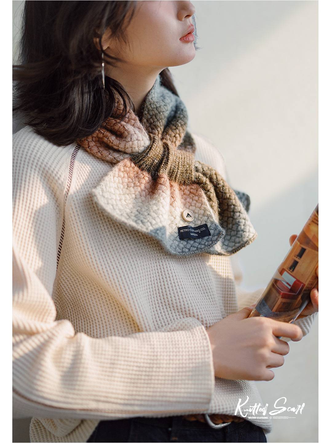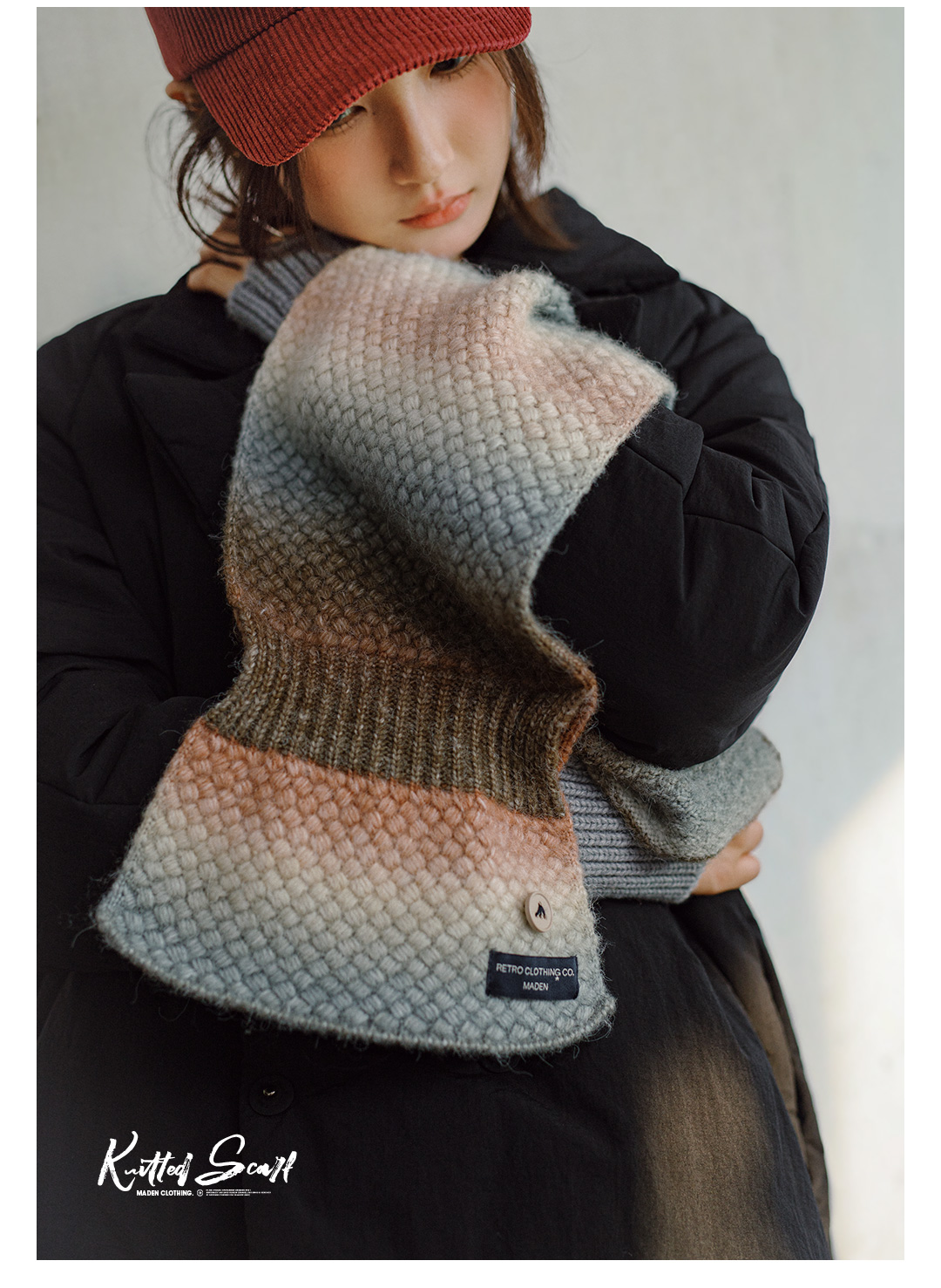 马登渐变保暖针织彩色围脖复古软糯彩色高级感加厚保暖围巾冬季女