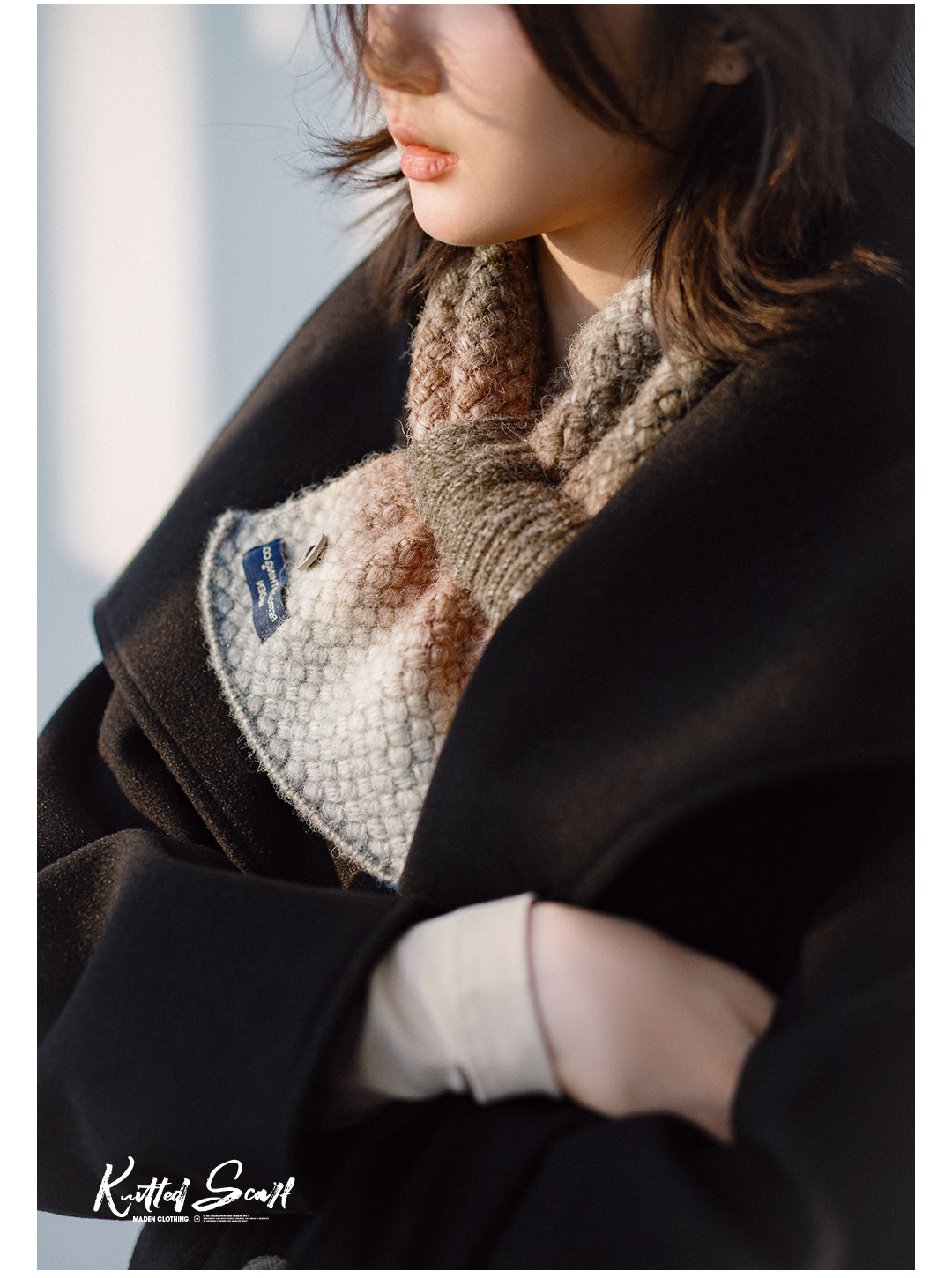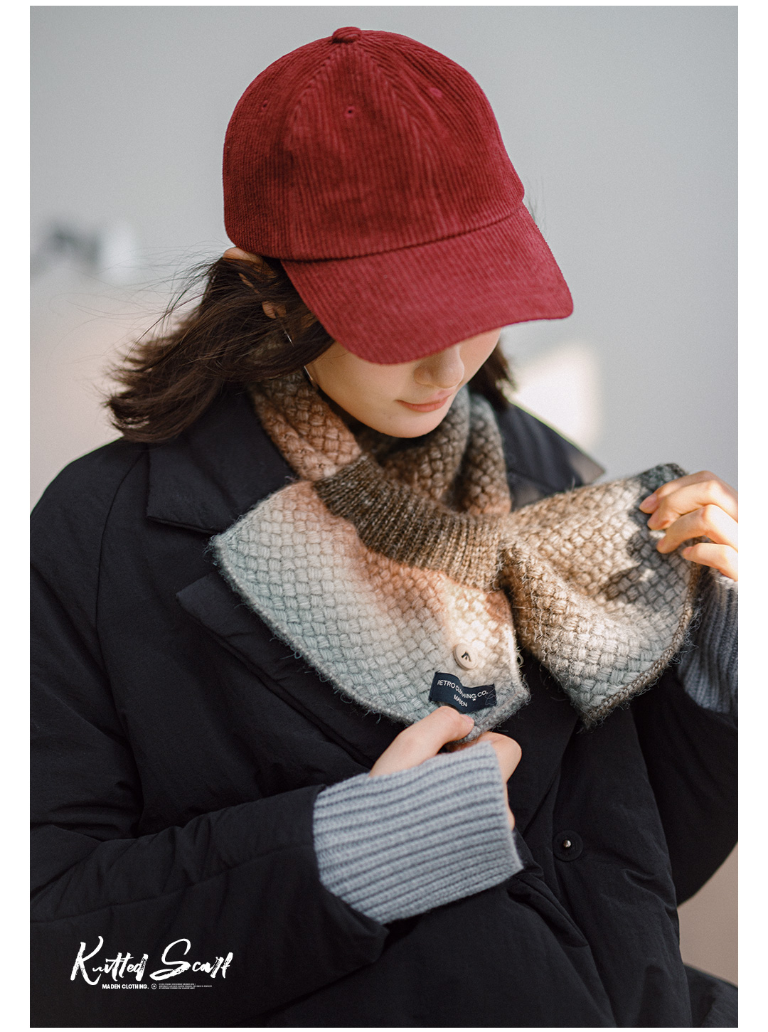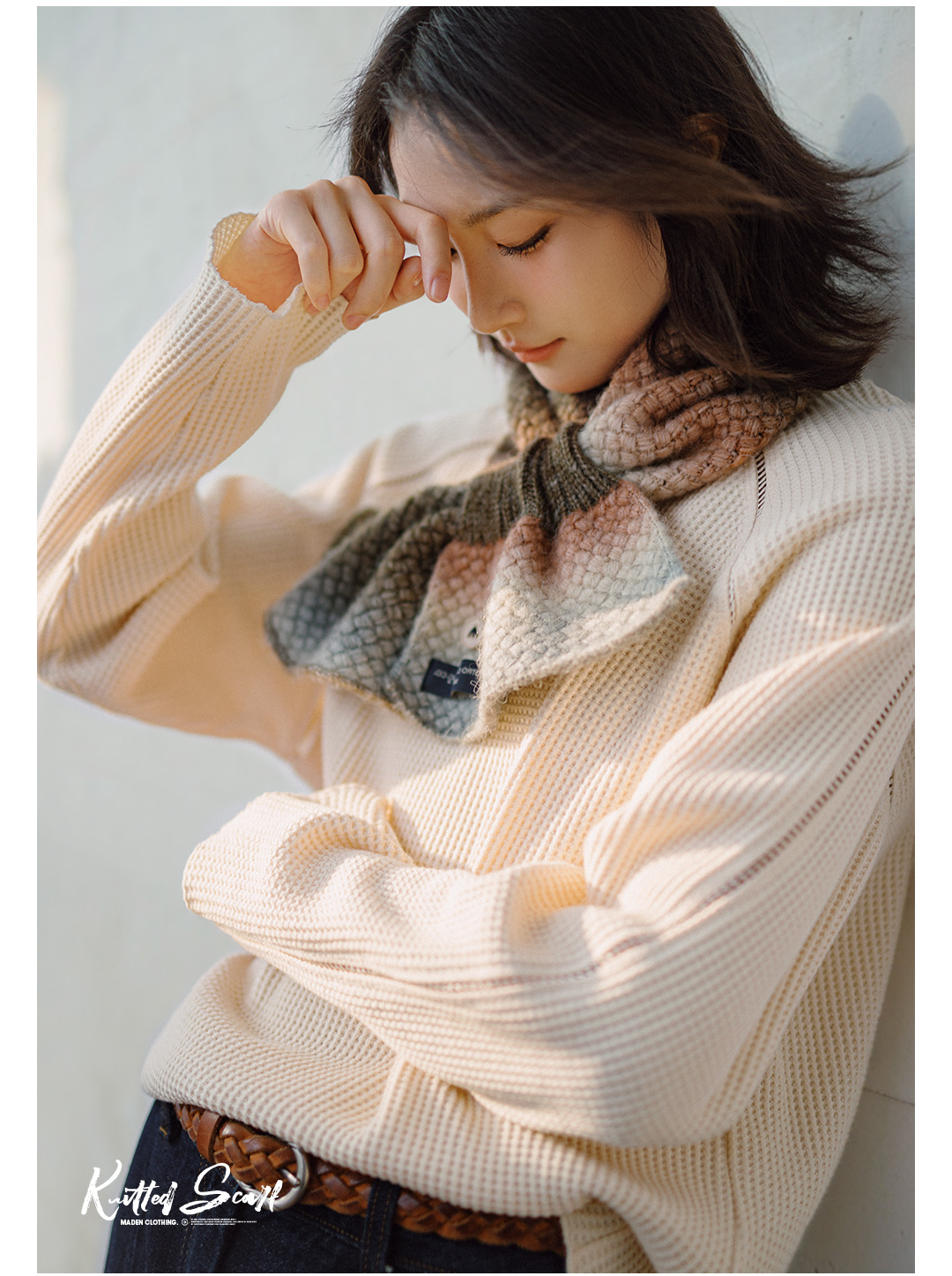 马登渐变保暖针织彩色围脖复古软糯彩色高级感加厚保暖围巾冬季女