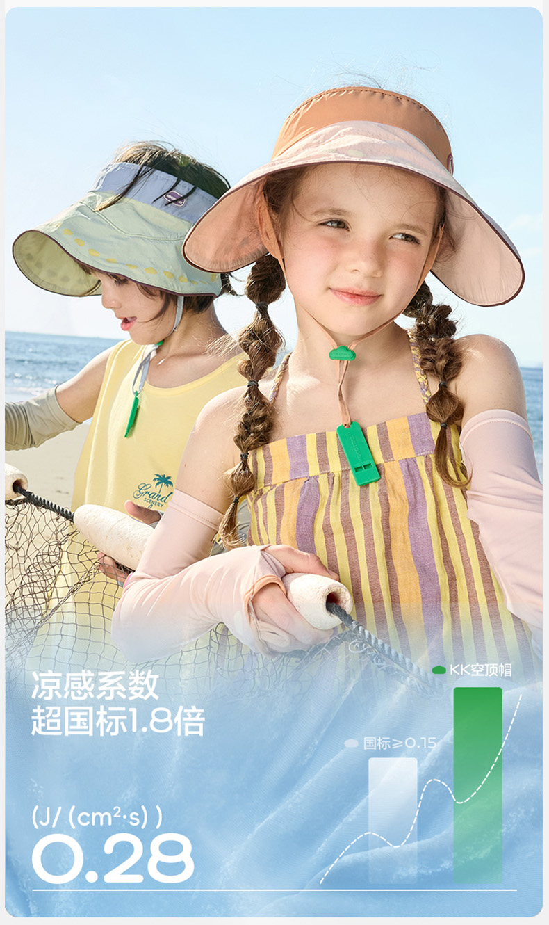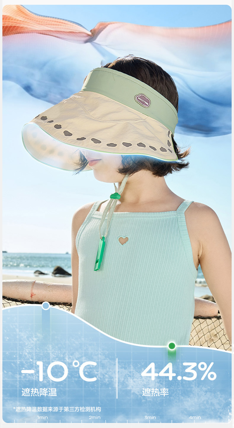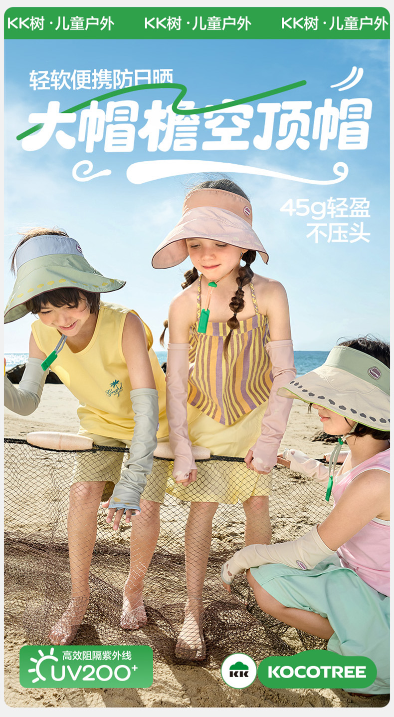 KK树儿童防晒帽男童女孩遮阳帽夏季宝宝户外大帽檐空顶帽防紫外线小云檐空顶防晒帽