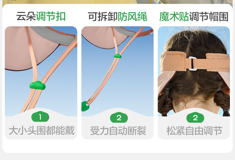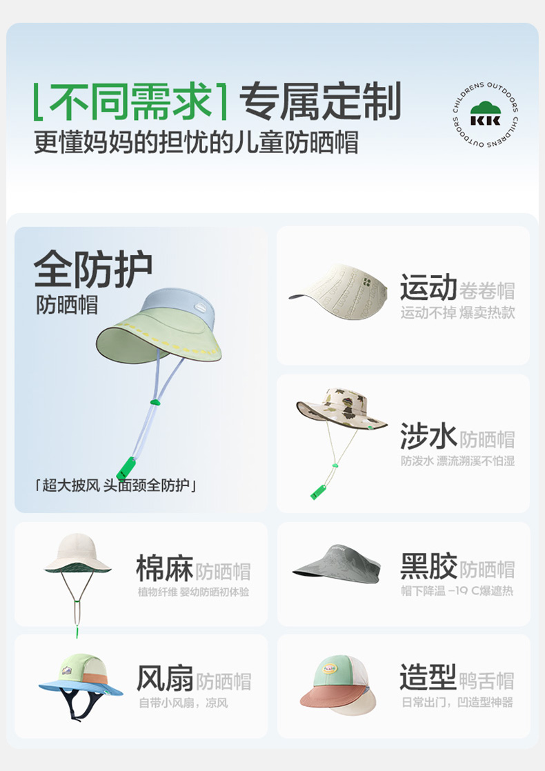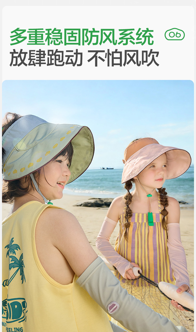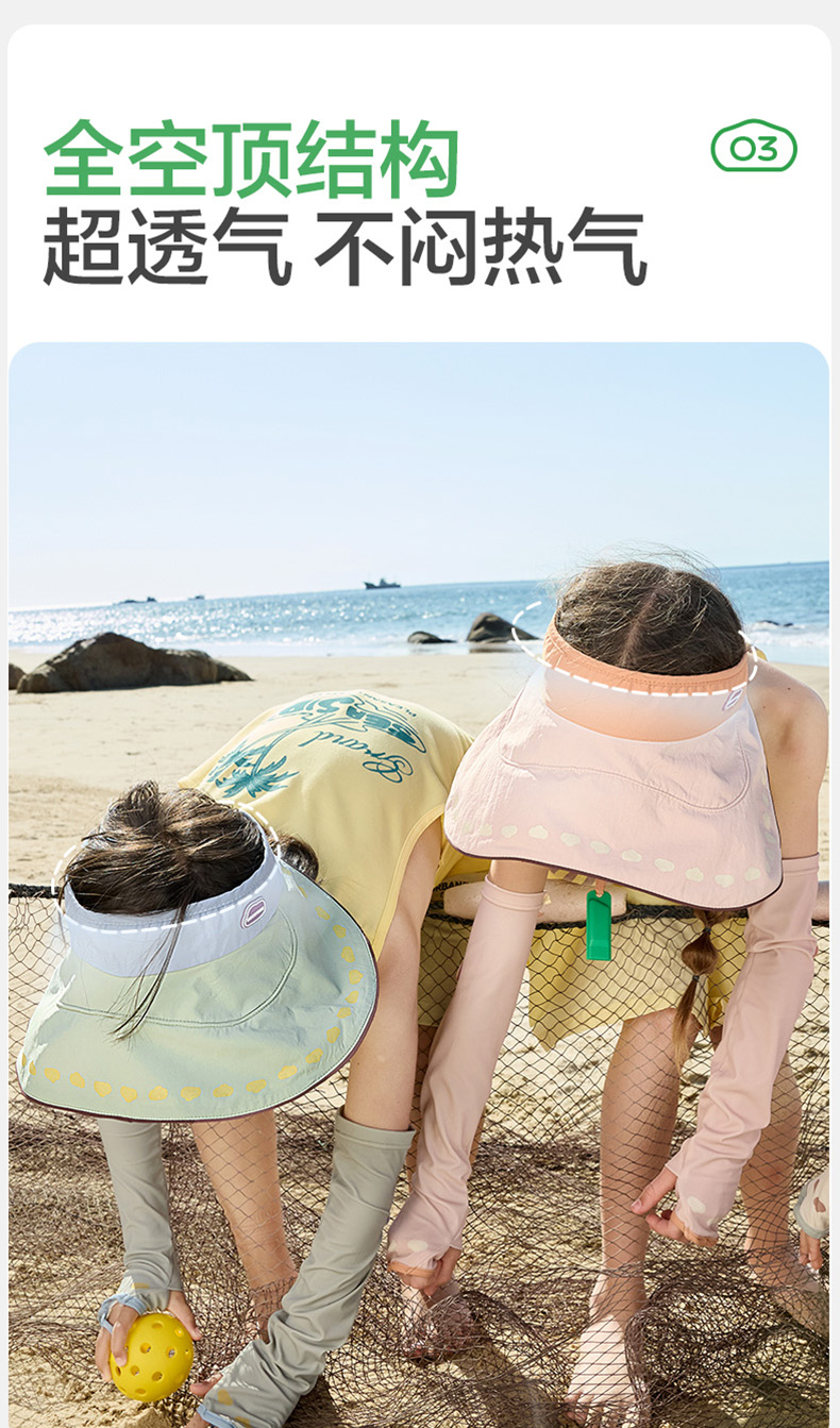 KK树儿童防晒帽男童女孩遮阳帽夏季宝宝户外大帽檐空顶帽防紫外线小云檐空顶防晒帽