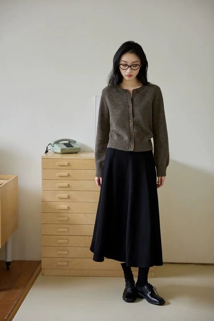 这款超美的GINNKEE醋酸羊毛针织毛呢半身裙