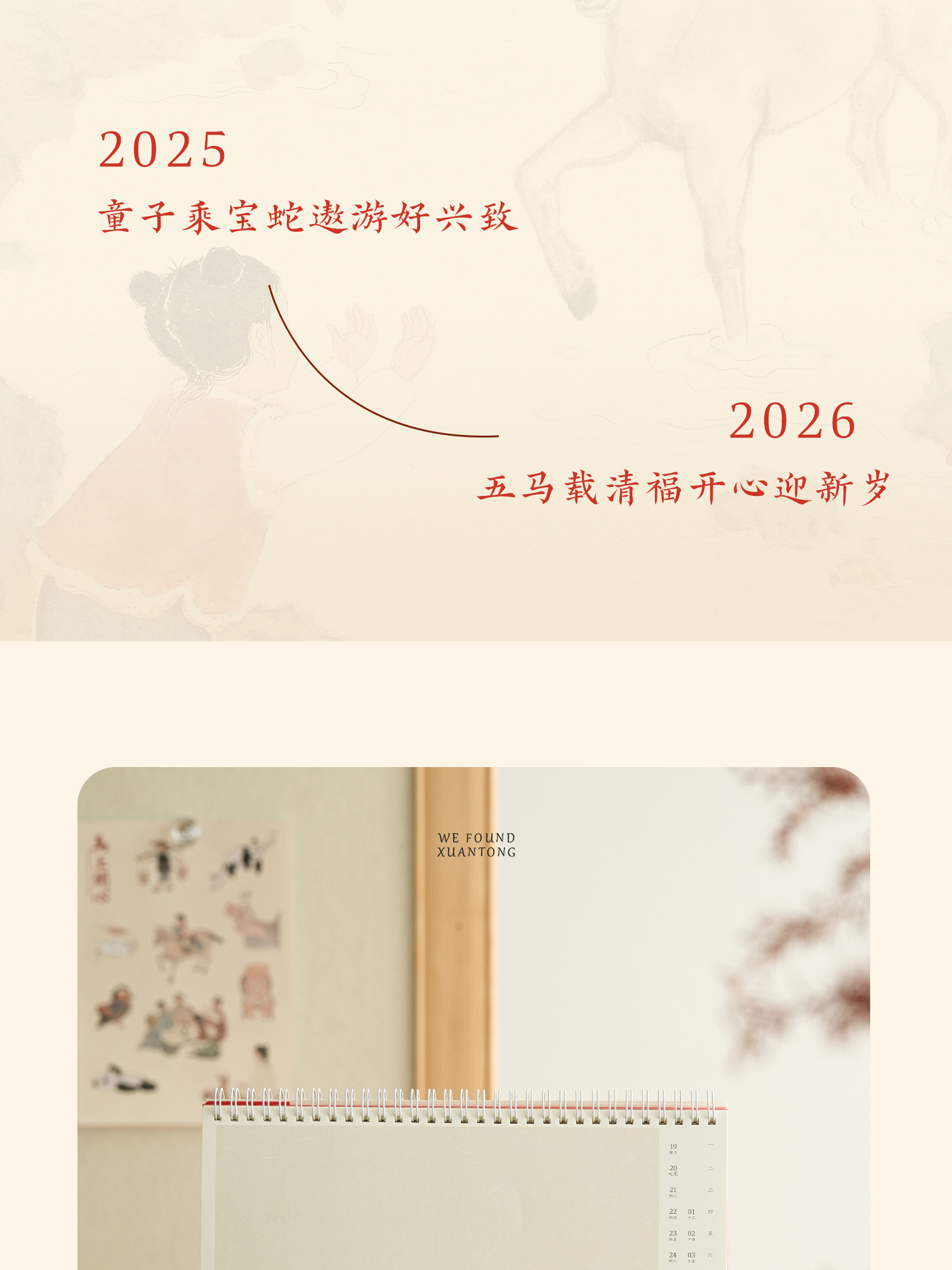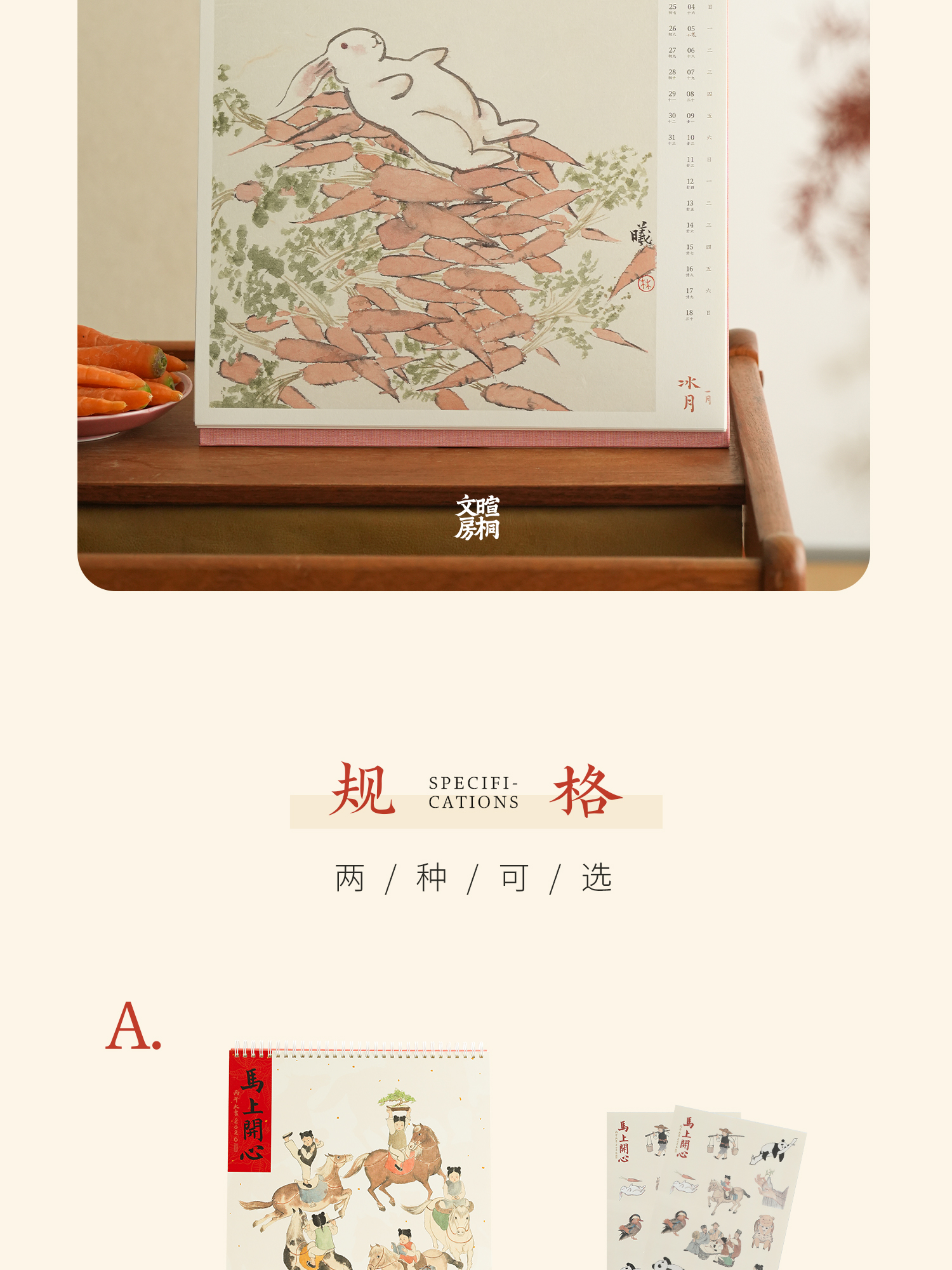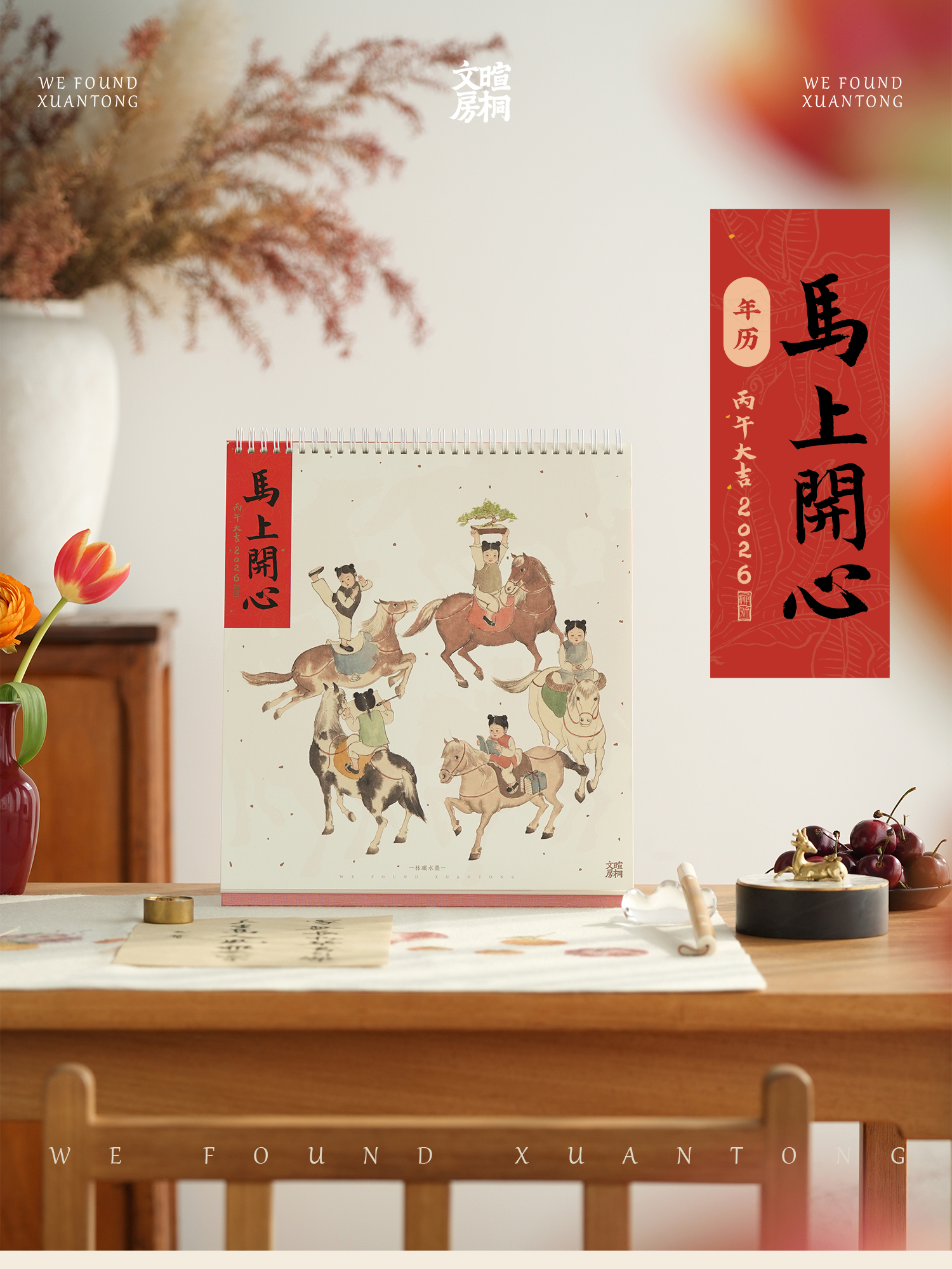 暄桐文房 林曦水墨 2026 丙午大吉 马上开心 大尺寸挂历