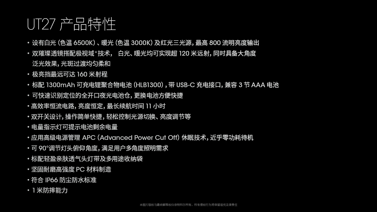 奈特科尔 UT27 800流明 轻量头灯 NITECORE