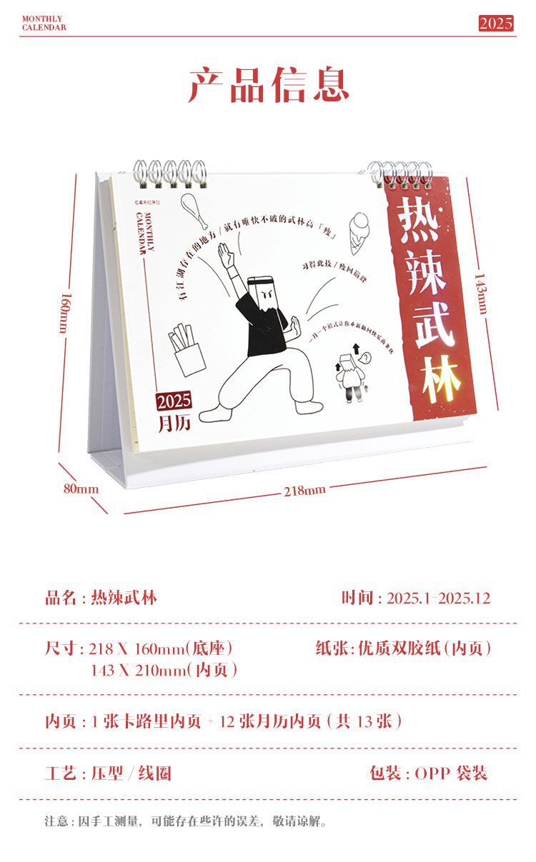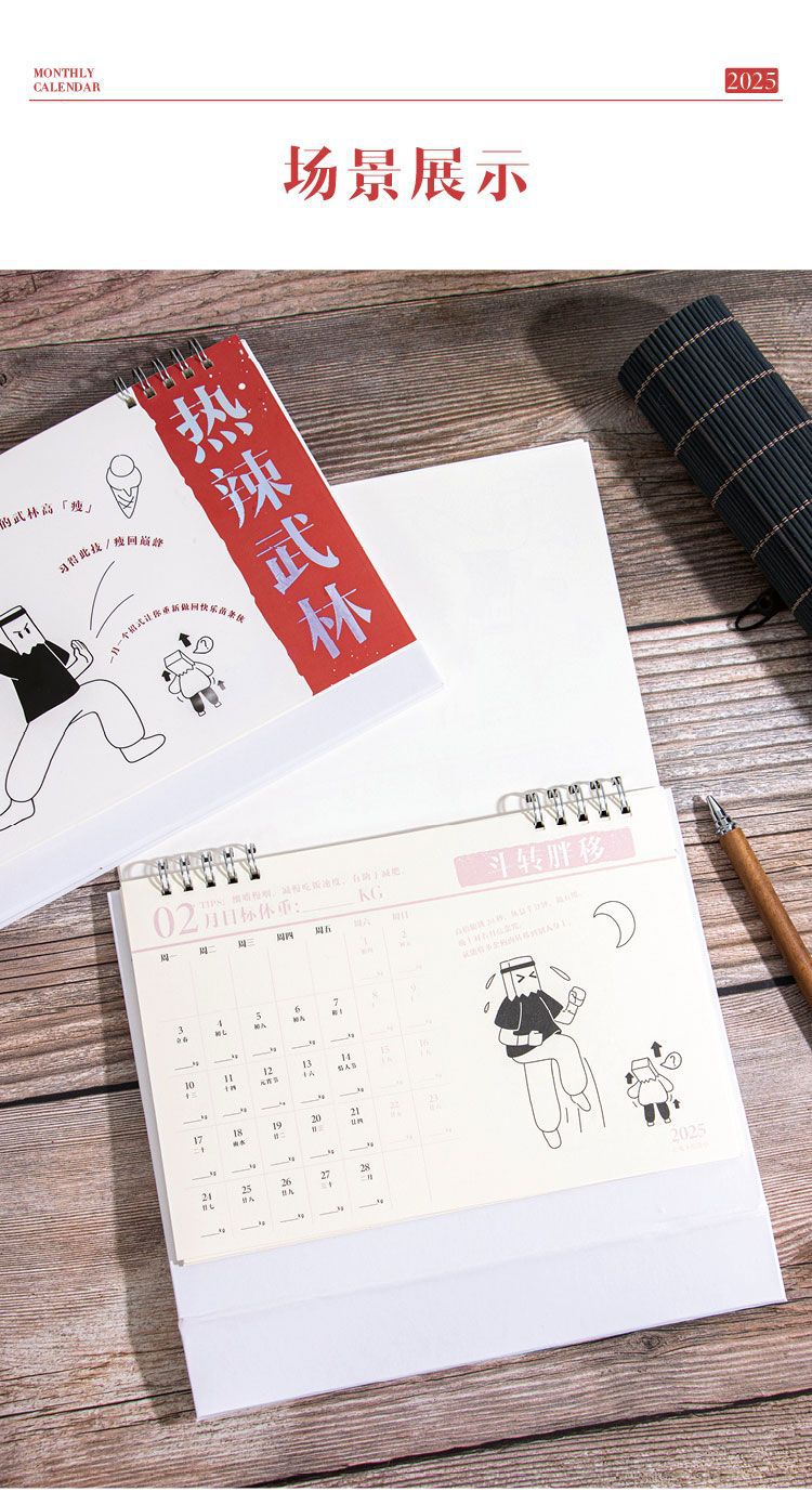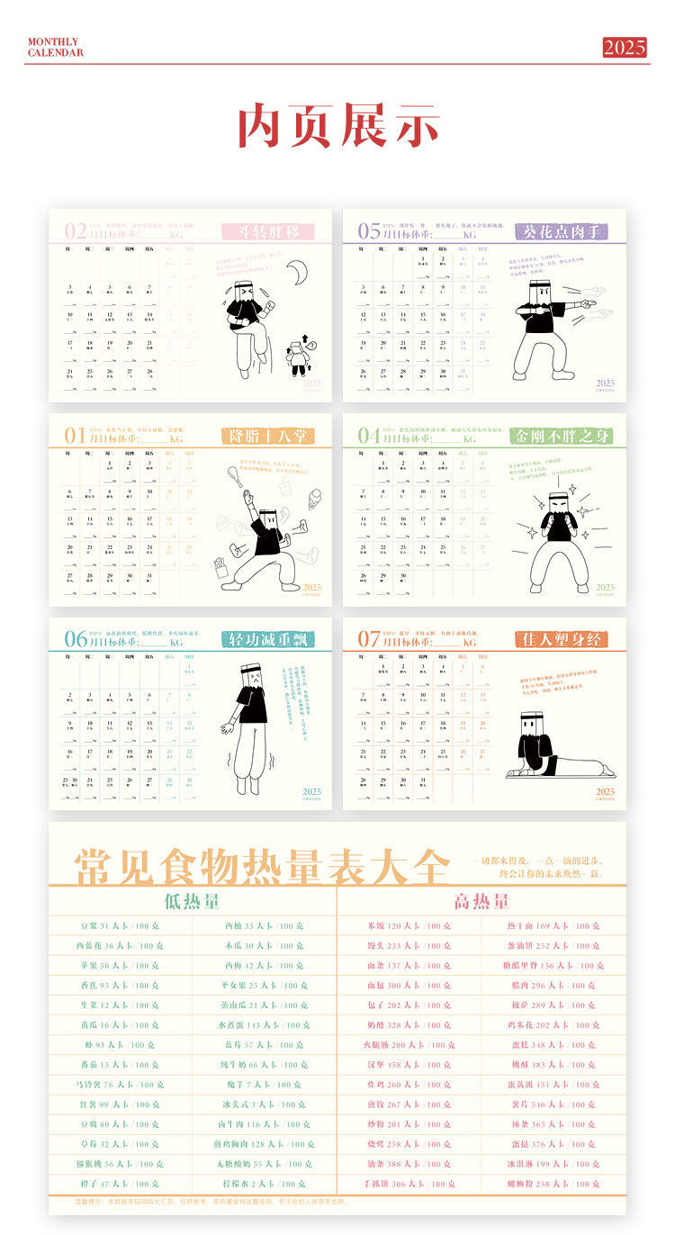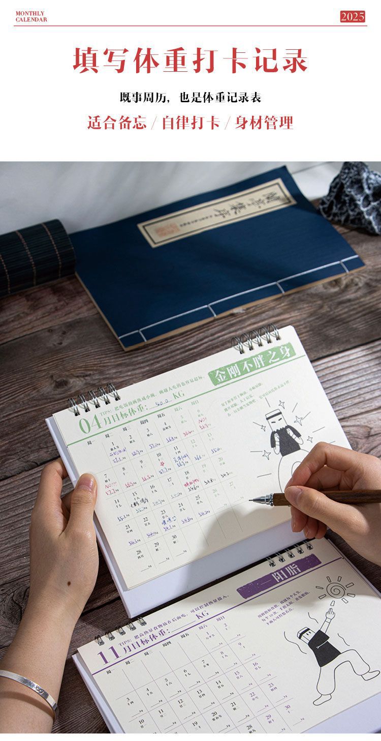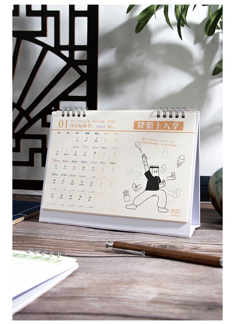 【不只是日历,更是瘦身秘籍】青禾纪热辣武林新月历减肥小妙招,既事周历,也是体重记录表,2025年打卡自律台历趣味摆件日历QQ