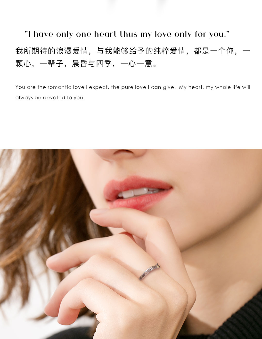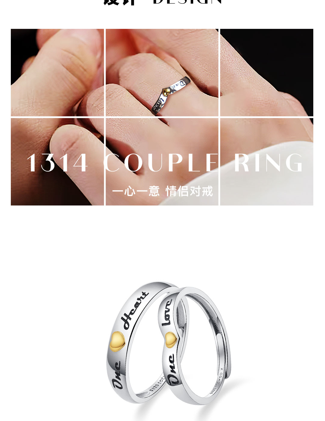 totwoo xS925银镀K金浪漫定情信物一心一意情侣对戒 送男女友