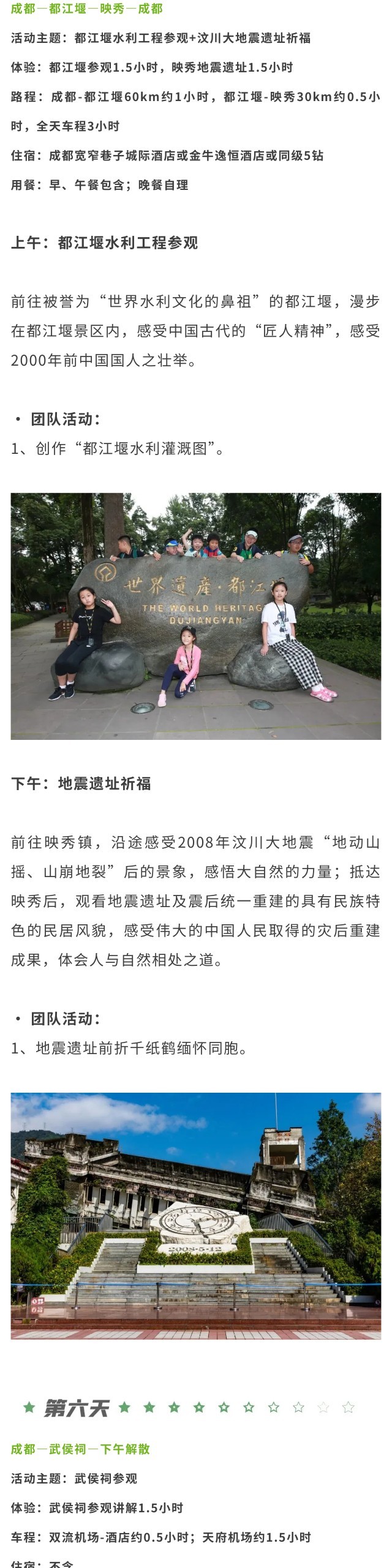 包含以下活动涉及的第一景点门票:杜甫草堂,三星堆博物馆,都江堰及电瓶车,武侯祠,映秀地震遗址。