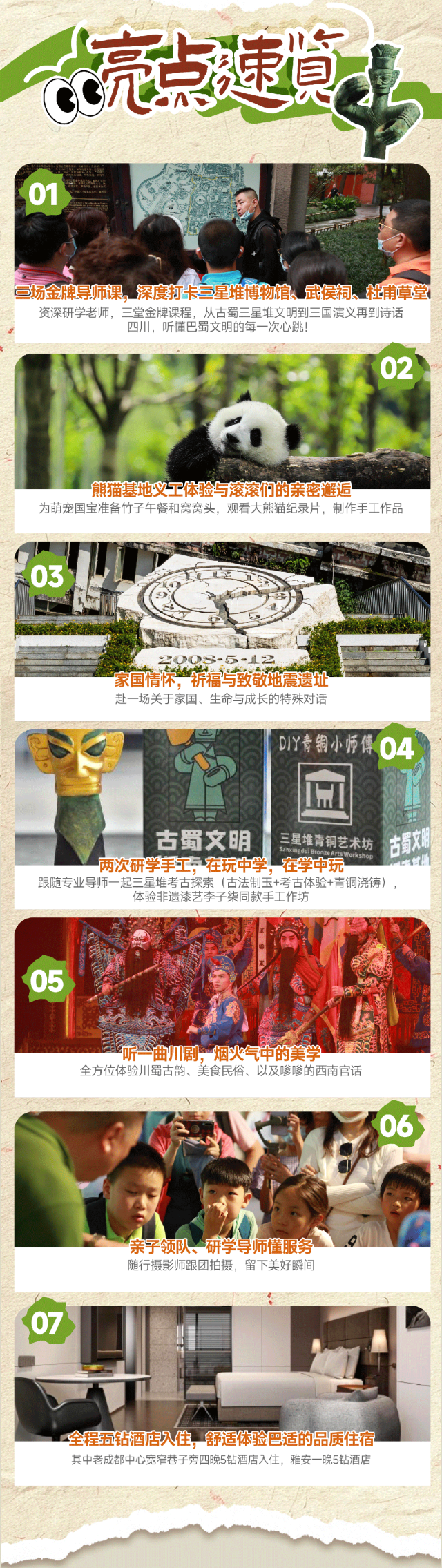 【寒假亲子营】寻趣古蜀6天5晚 | 去熊猫基地当一回小小义工,听金牌导师揭秘三星堆文明,体验非遗漆艺手工...