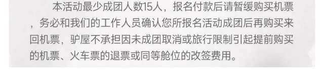 活动期间将为每位游客购买保险,请报名时准确填写“参加活动人员的真实姓名及身份证号”,如不填写或填写错误则视为放弃购买保险,行程中出现的风险和损失将由您个人承担。