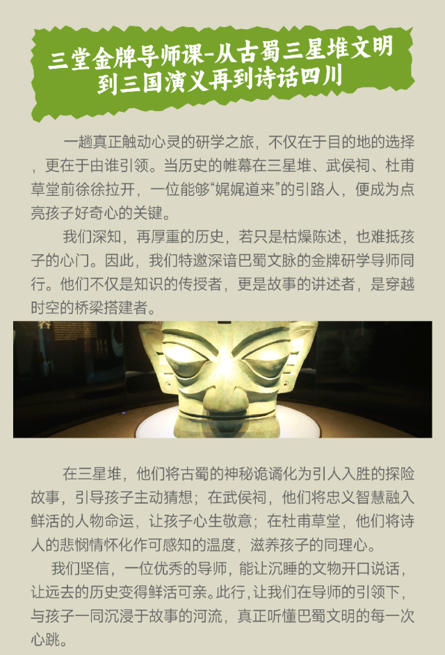 三场主题课-武侯祠-蓉城话三国草堂-诗意巴蜀三星堆博物馆-遇见神秘三星堆。