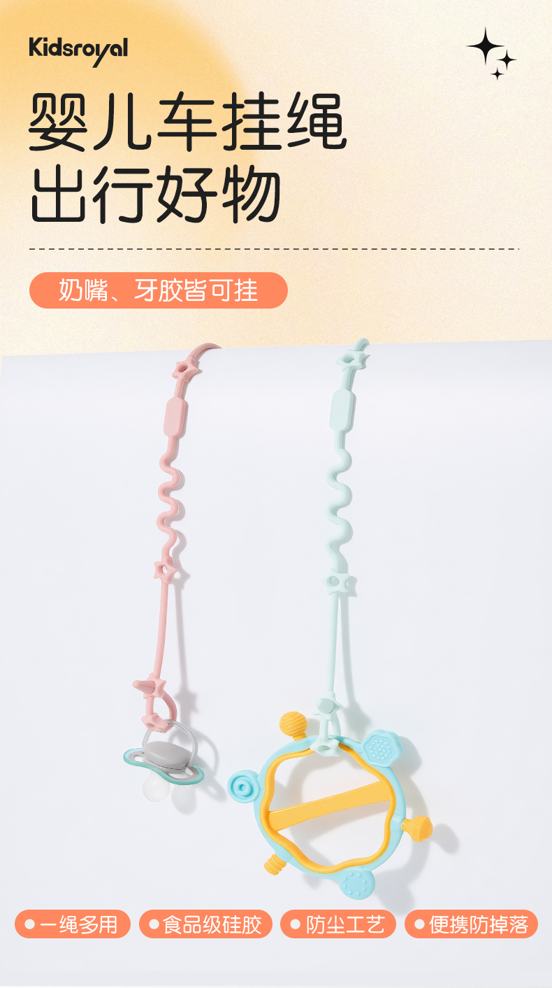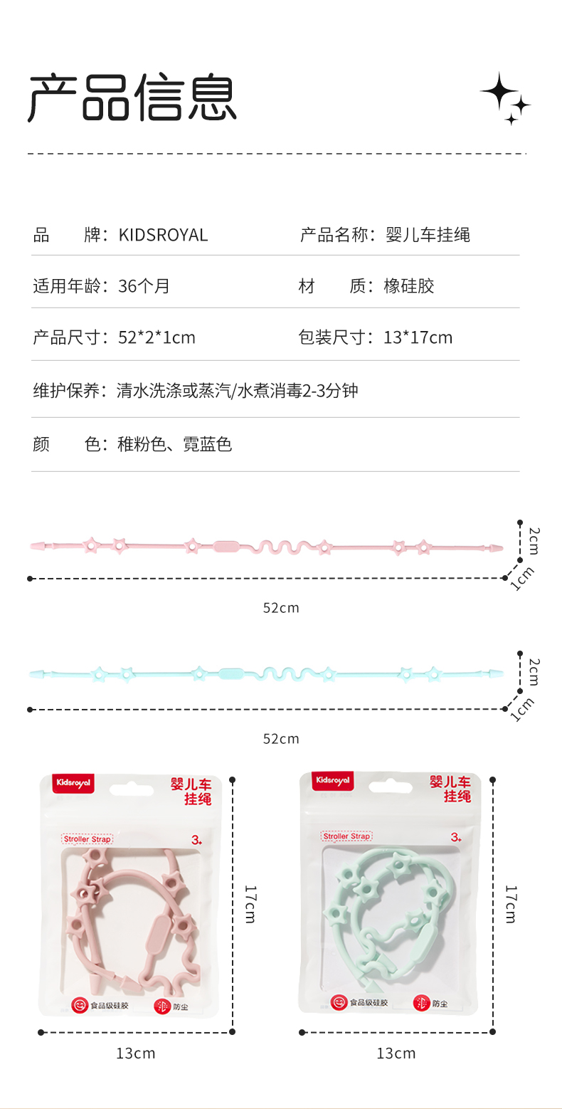 KIDSROYAL婴儿车挂绳ST09稚粉色/霓蓝色