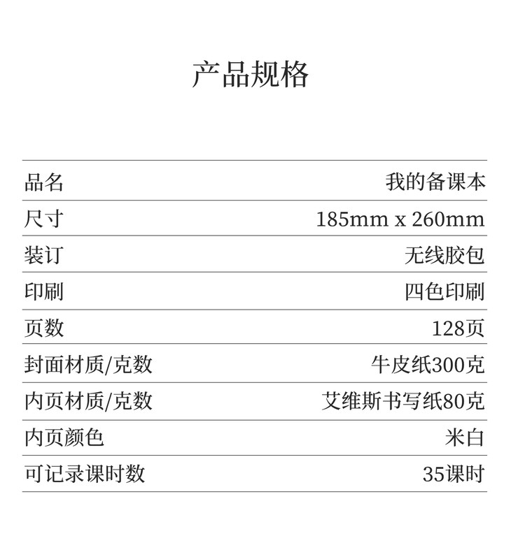 我的备课本针对学校可提供封面logo印制服务(100本起订)。具体条目如下: